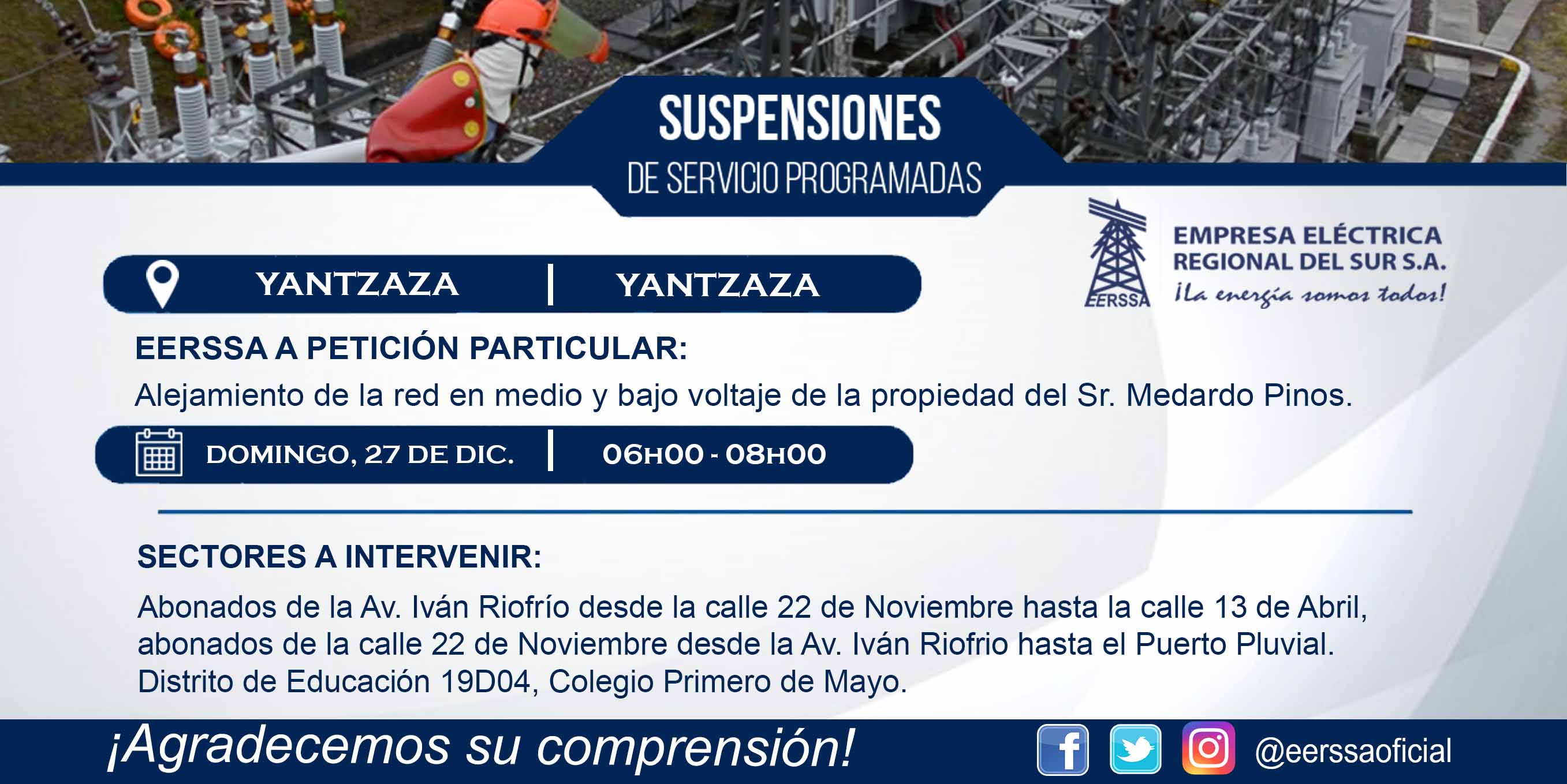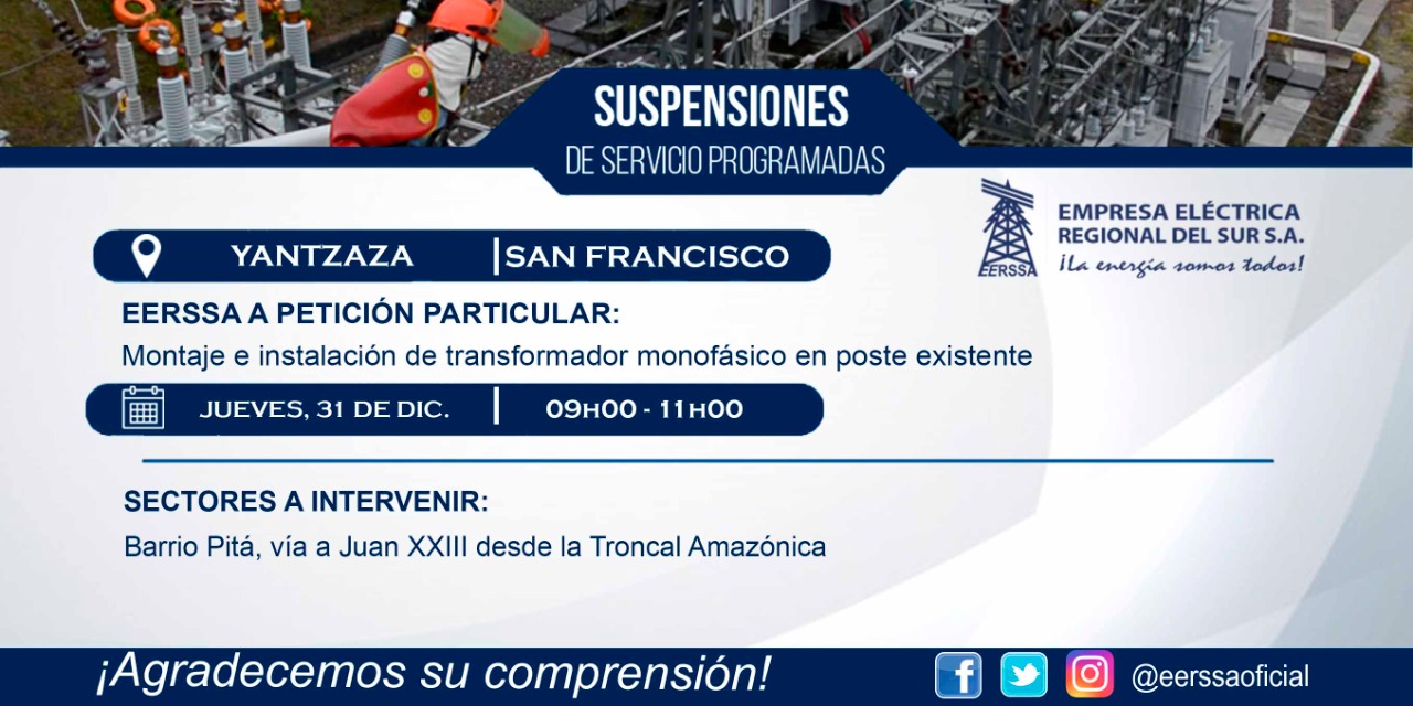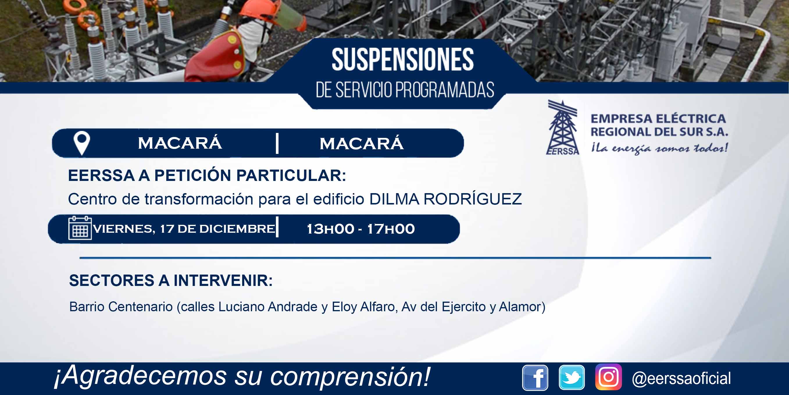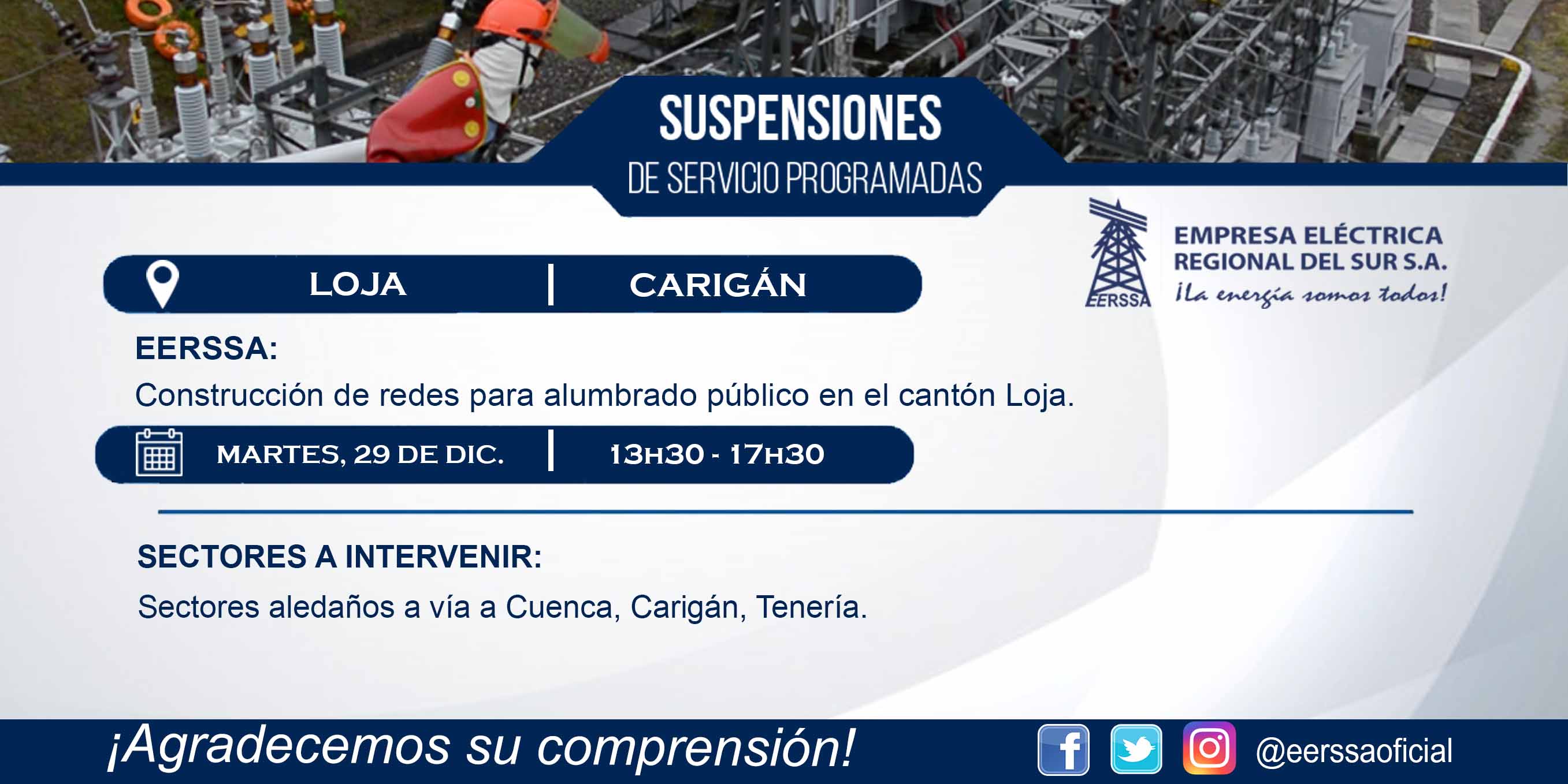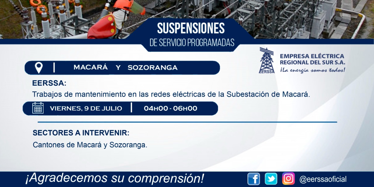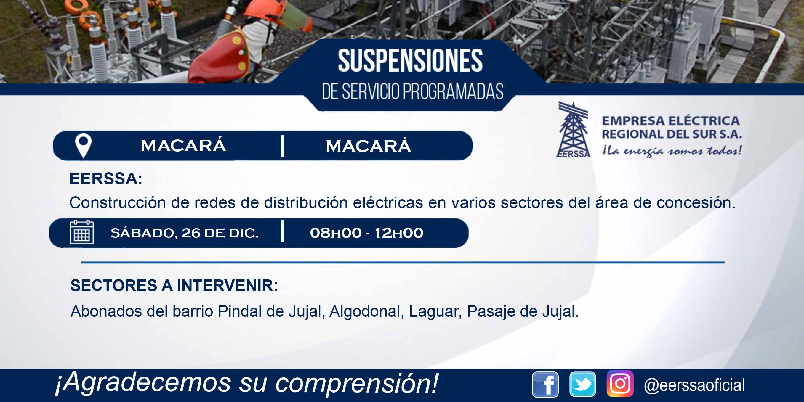 Suspensiones programadas 29 de dic Macará