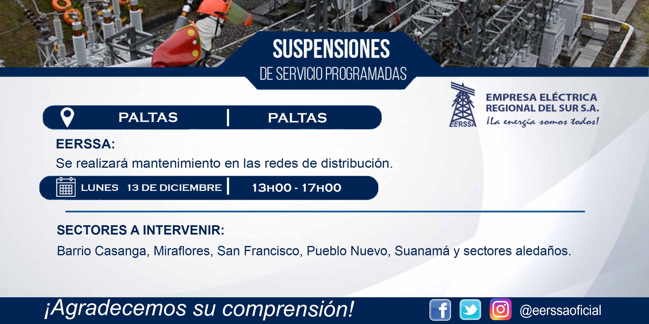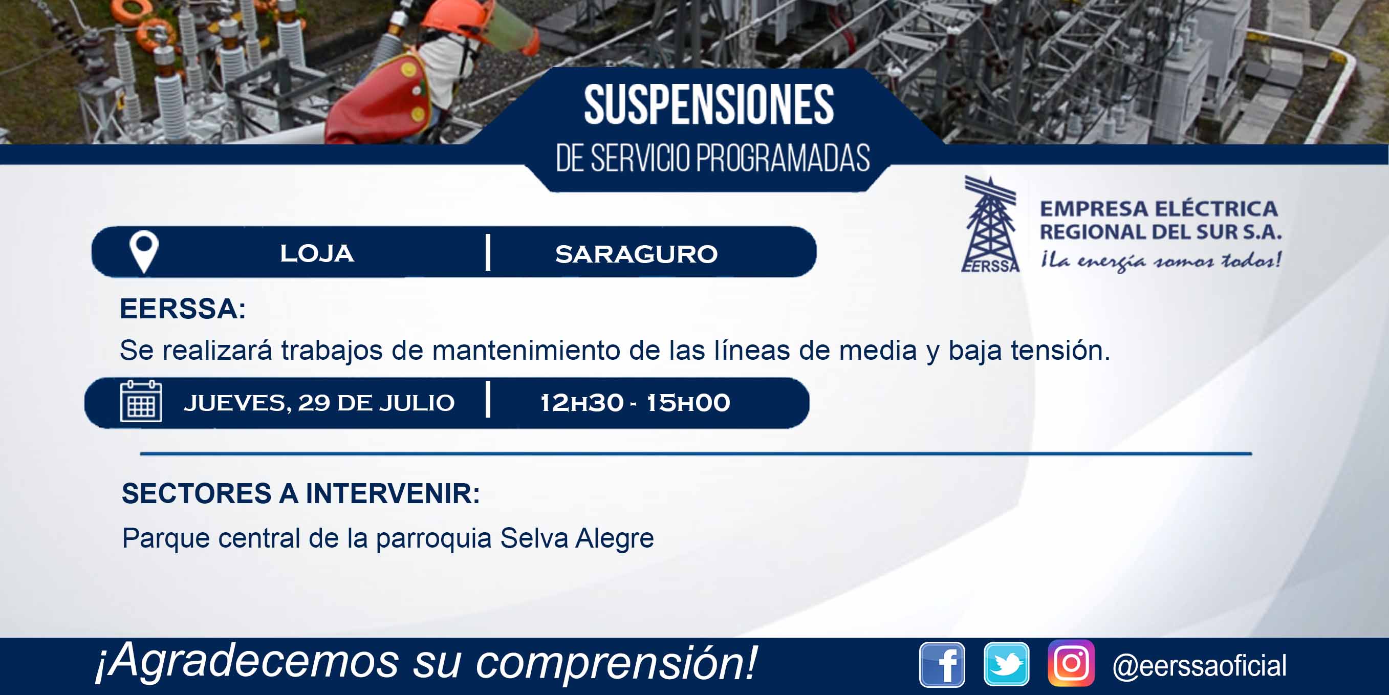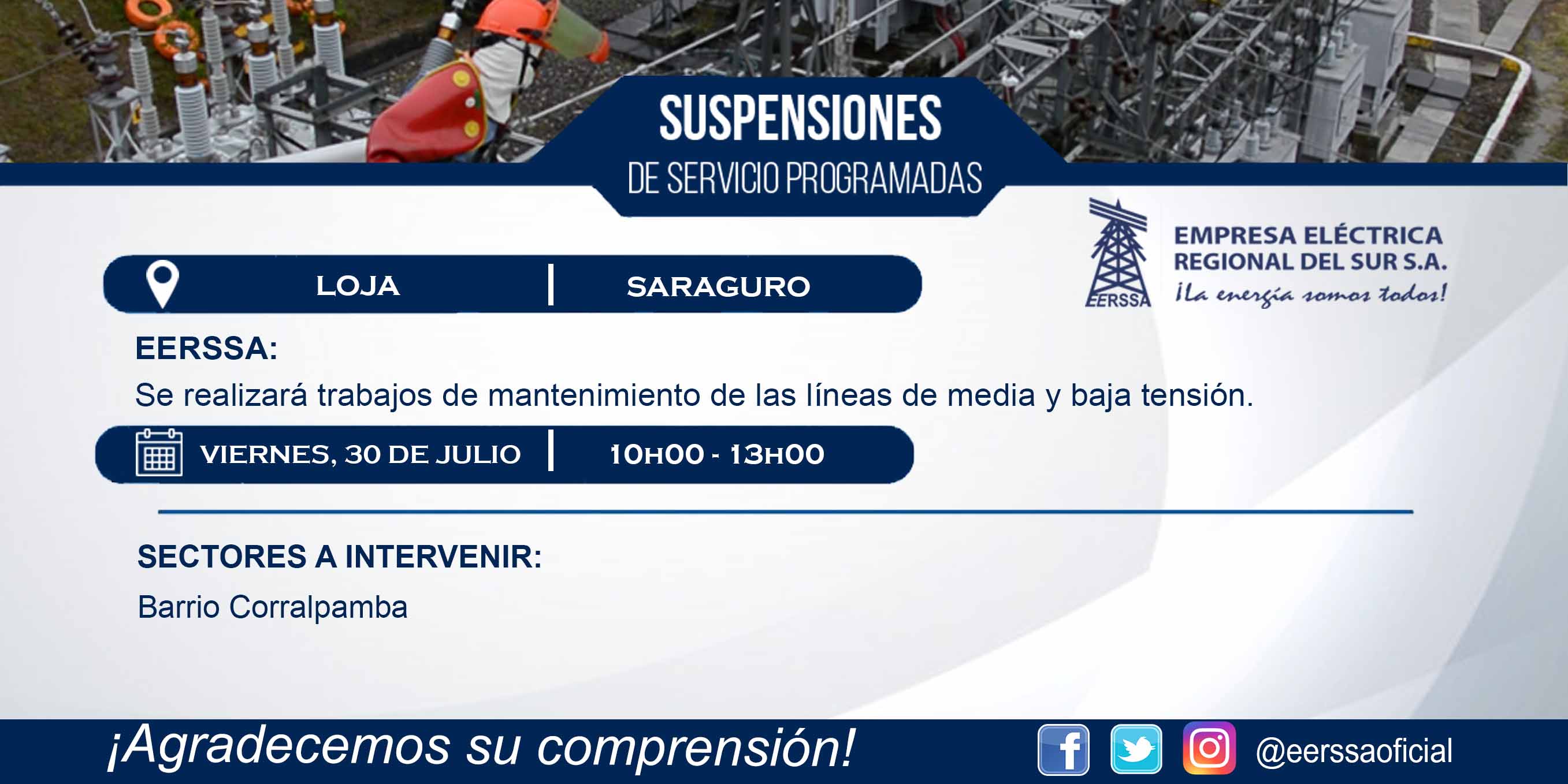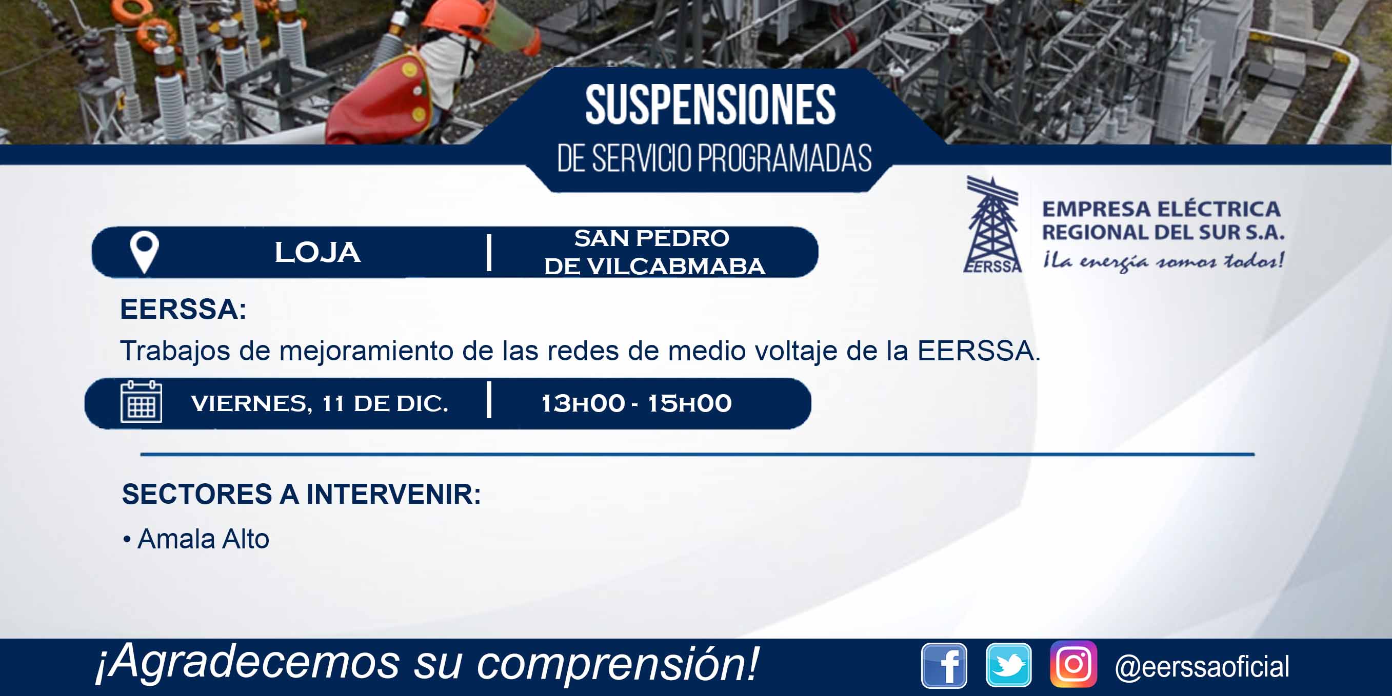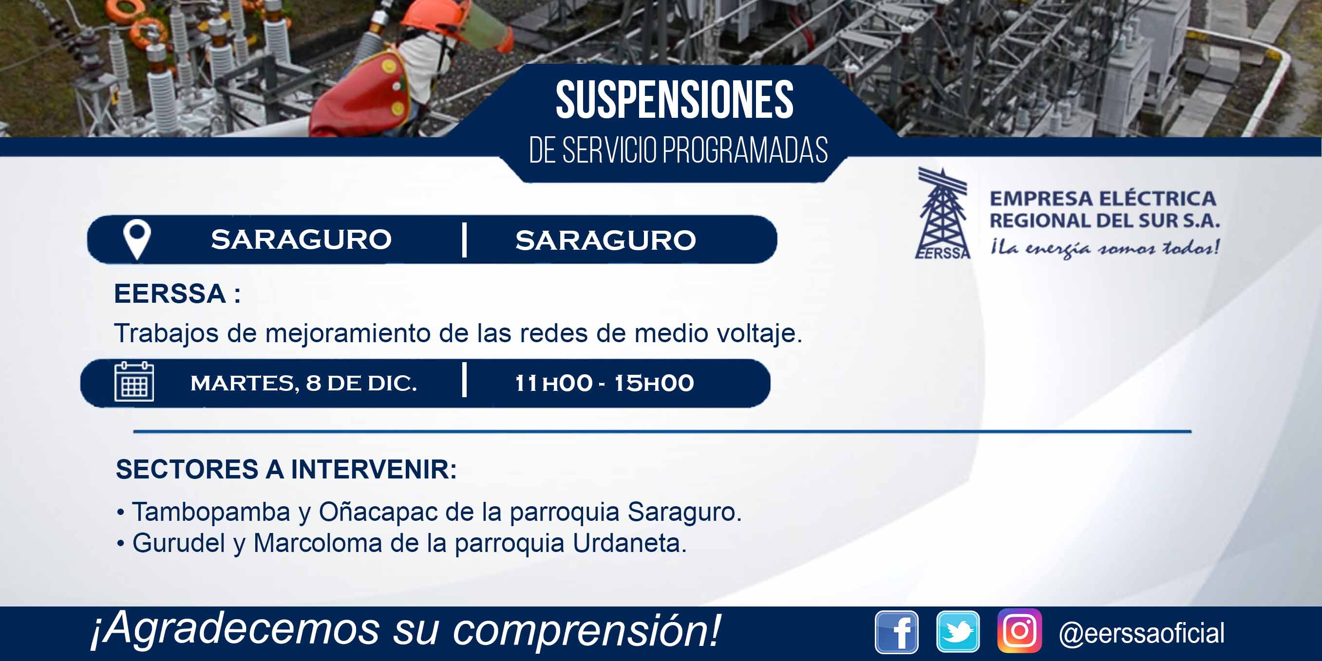 Suspensiones programadas 29 de dic Macará