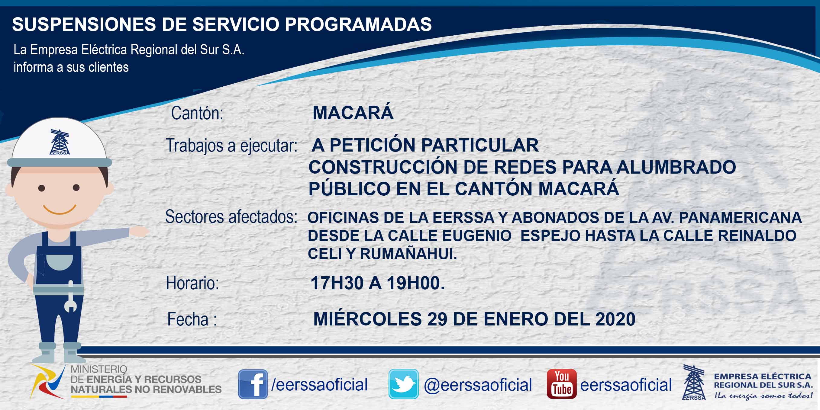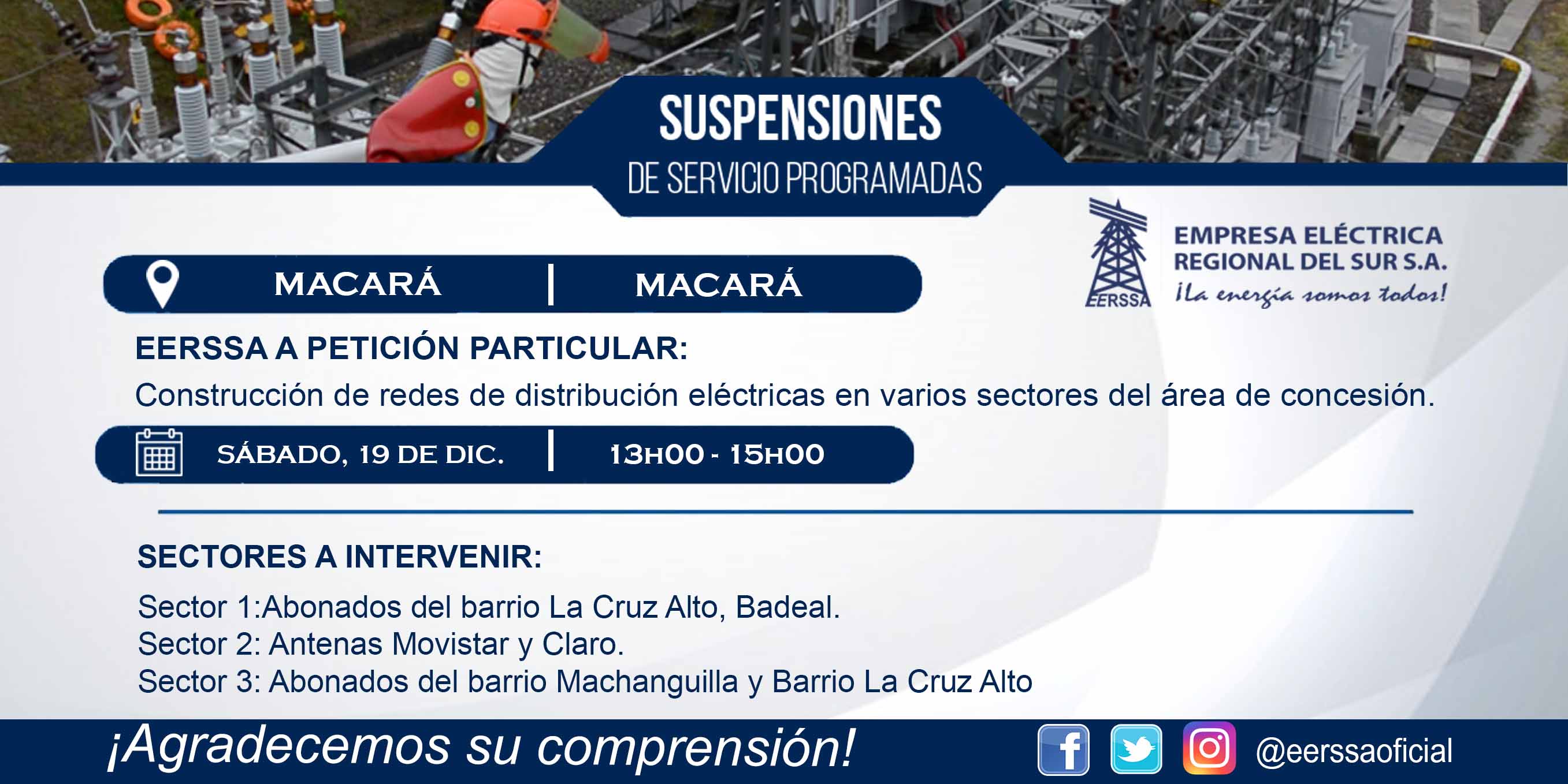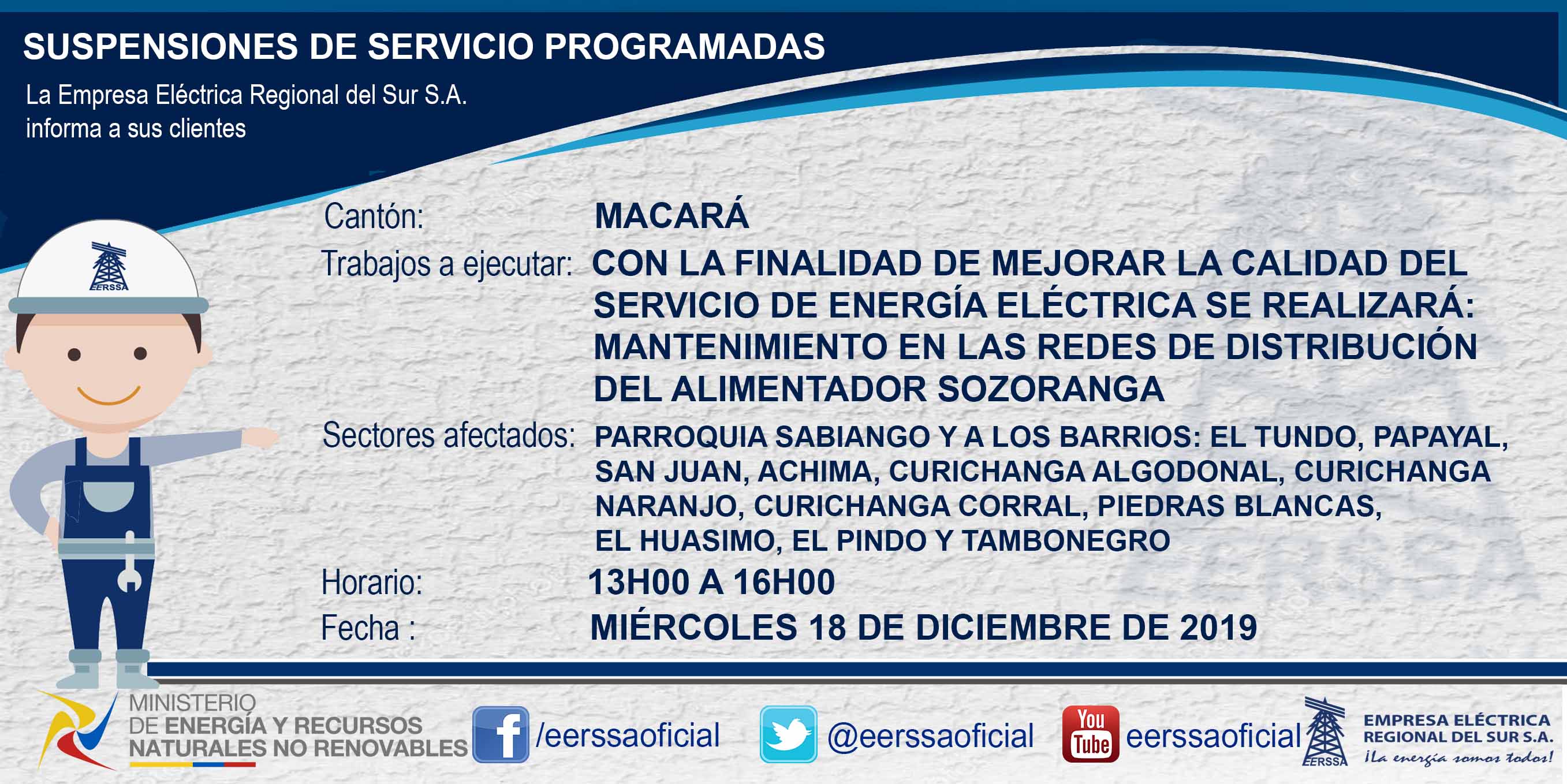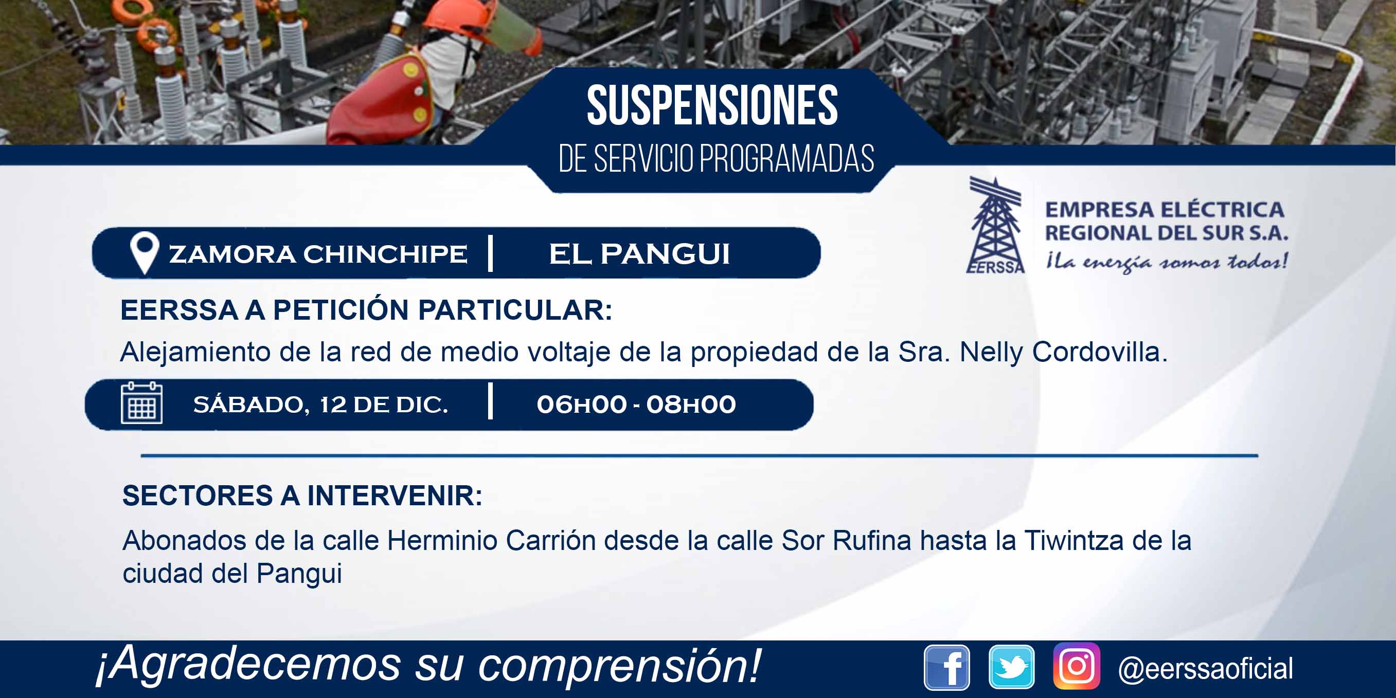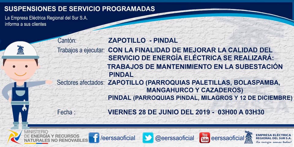Suspensiones programadas 29 de dic Macará
