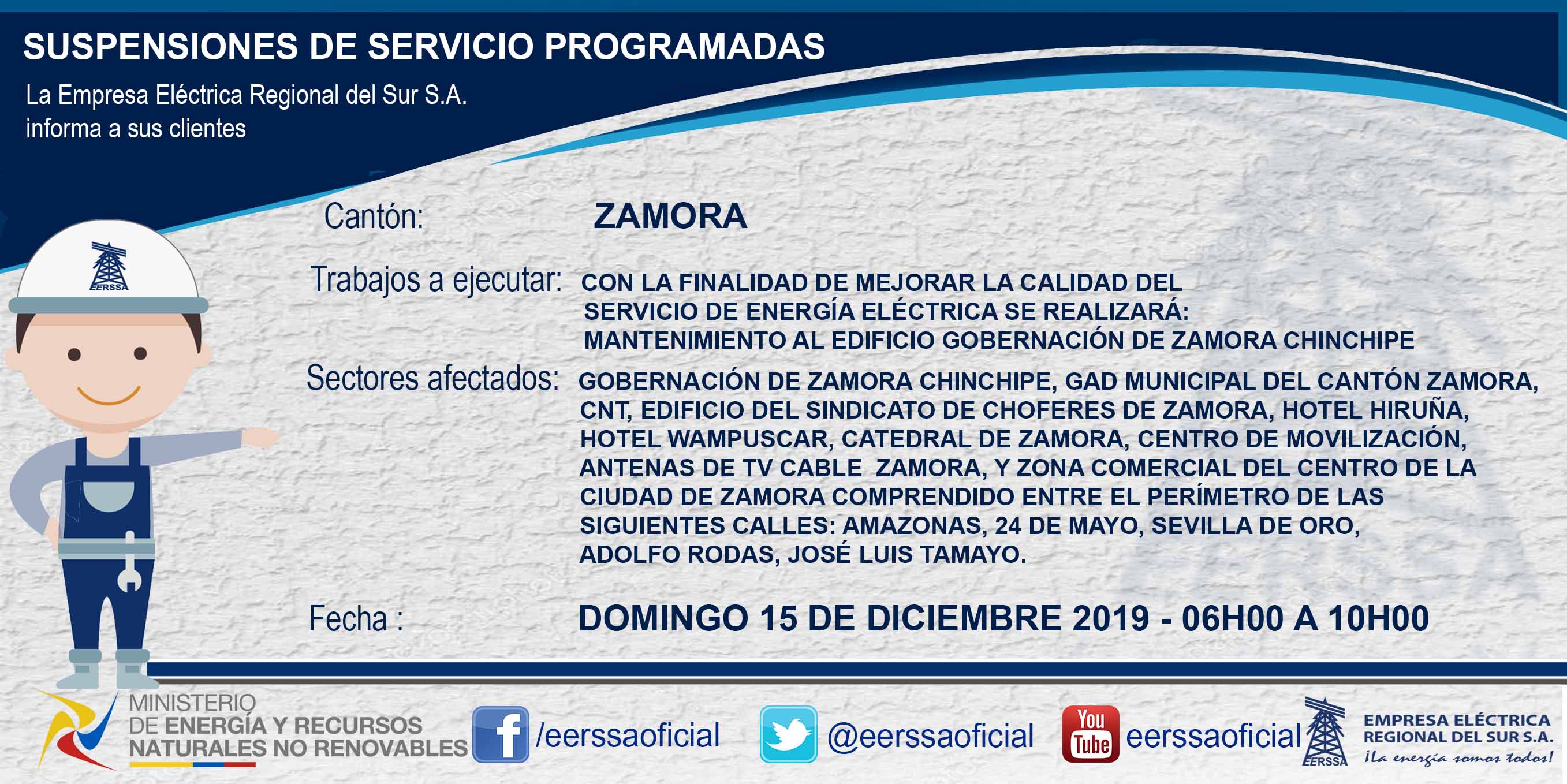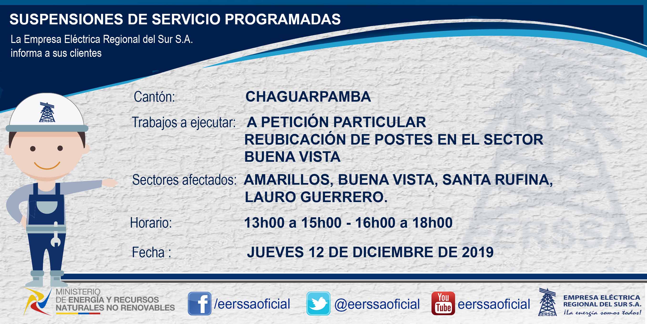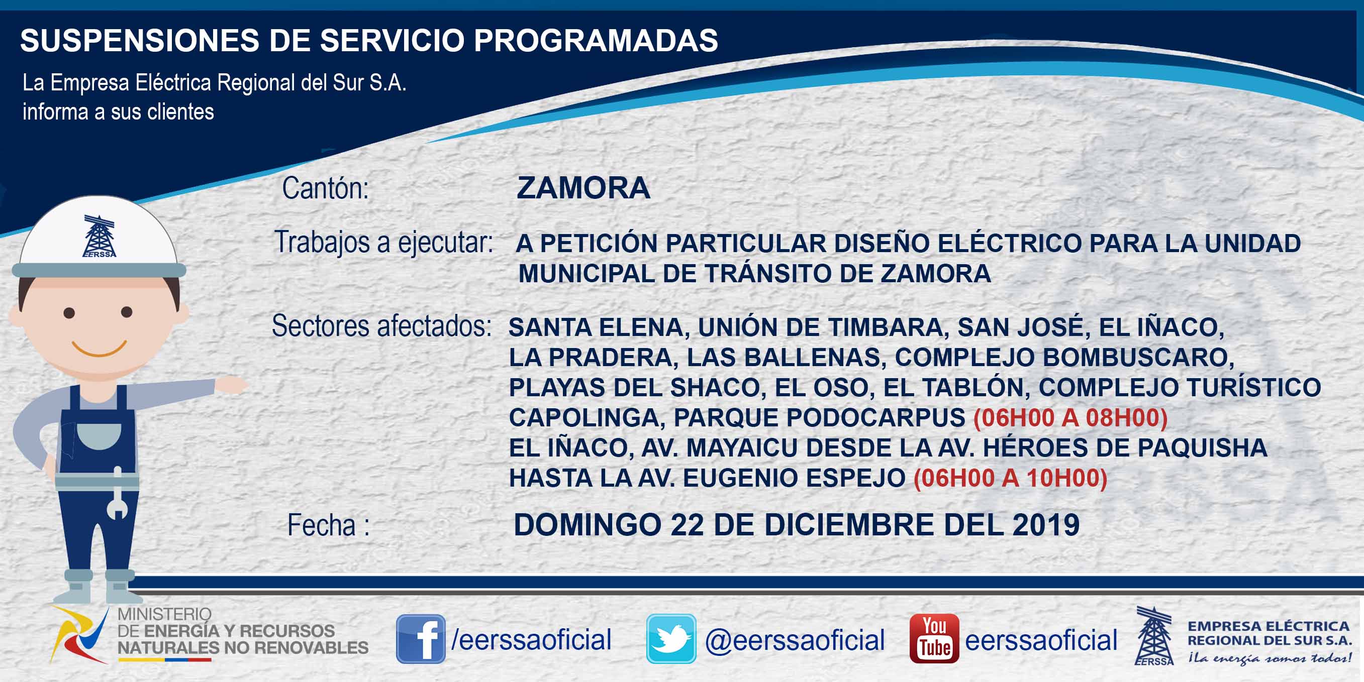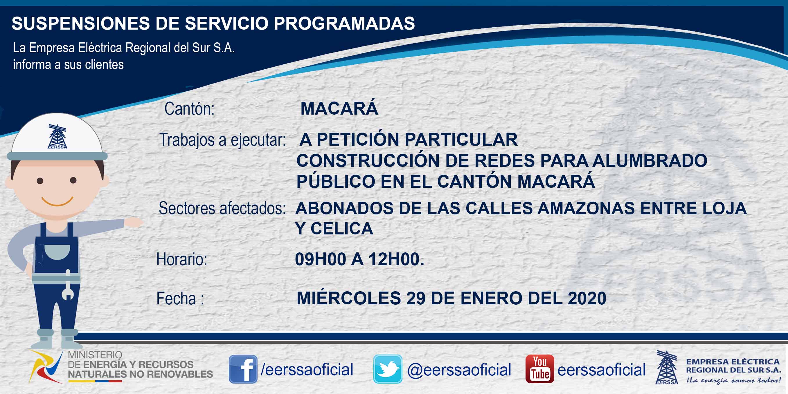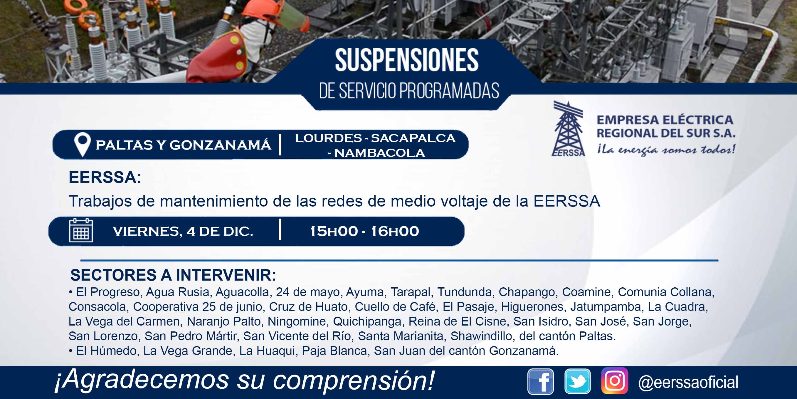 Suspensiones programadas 29 de dic Macará