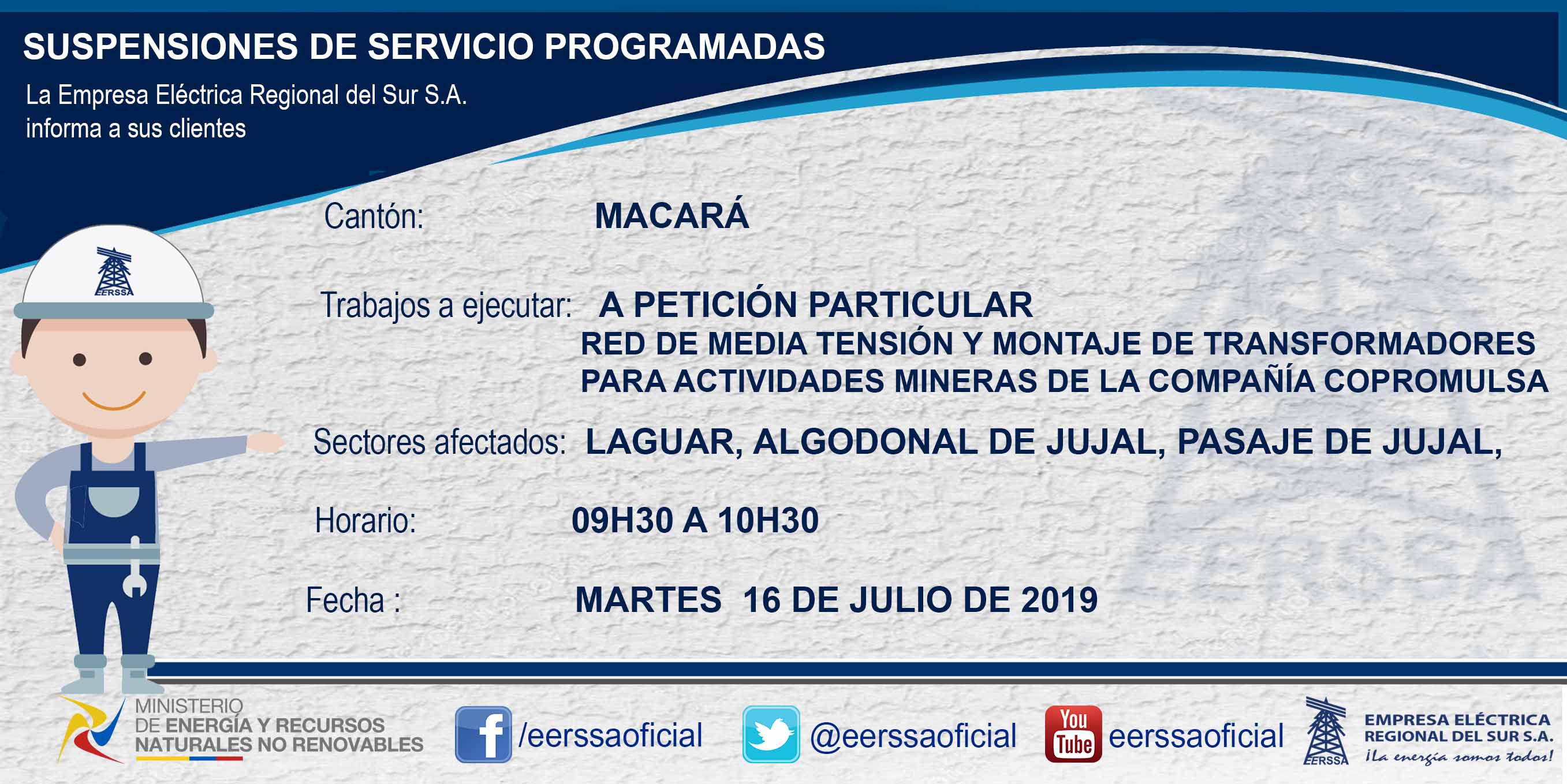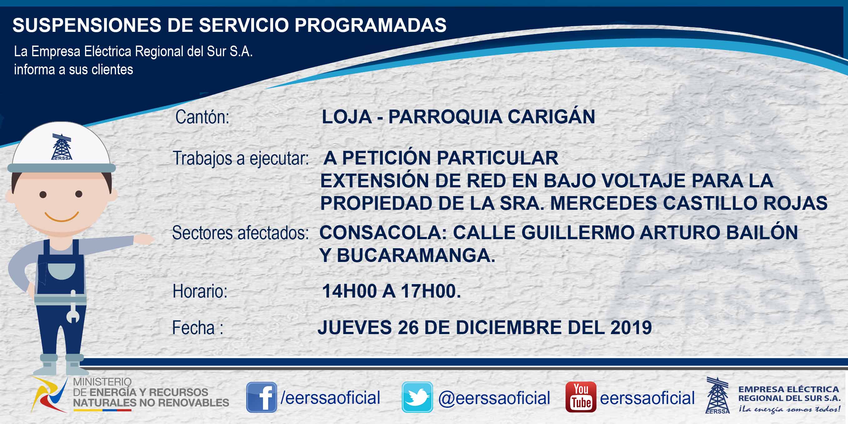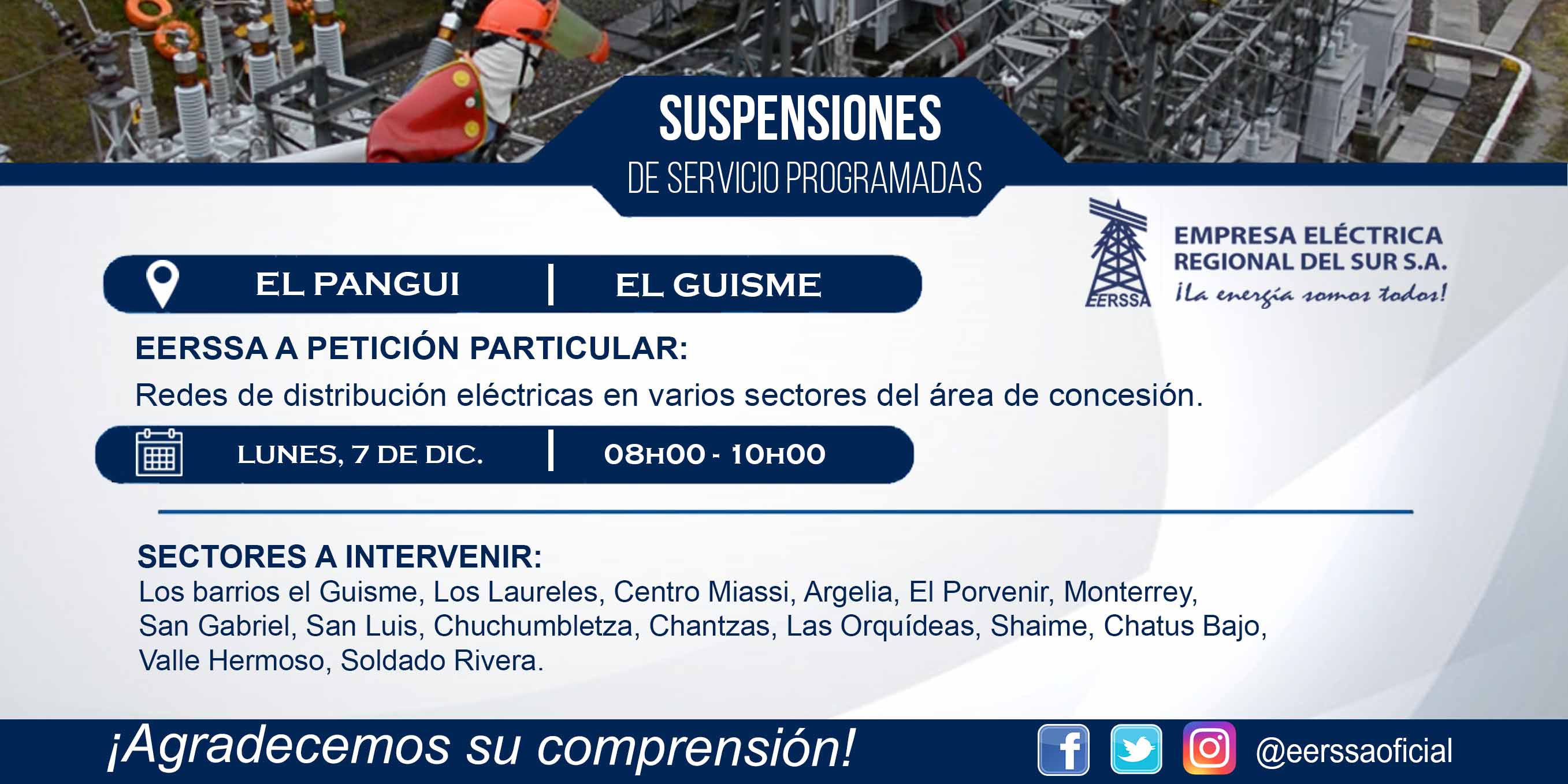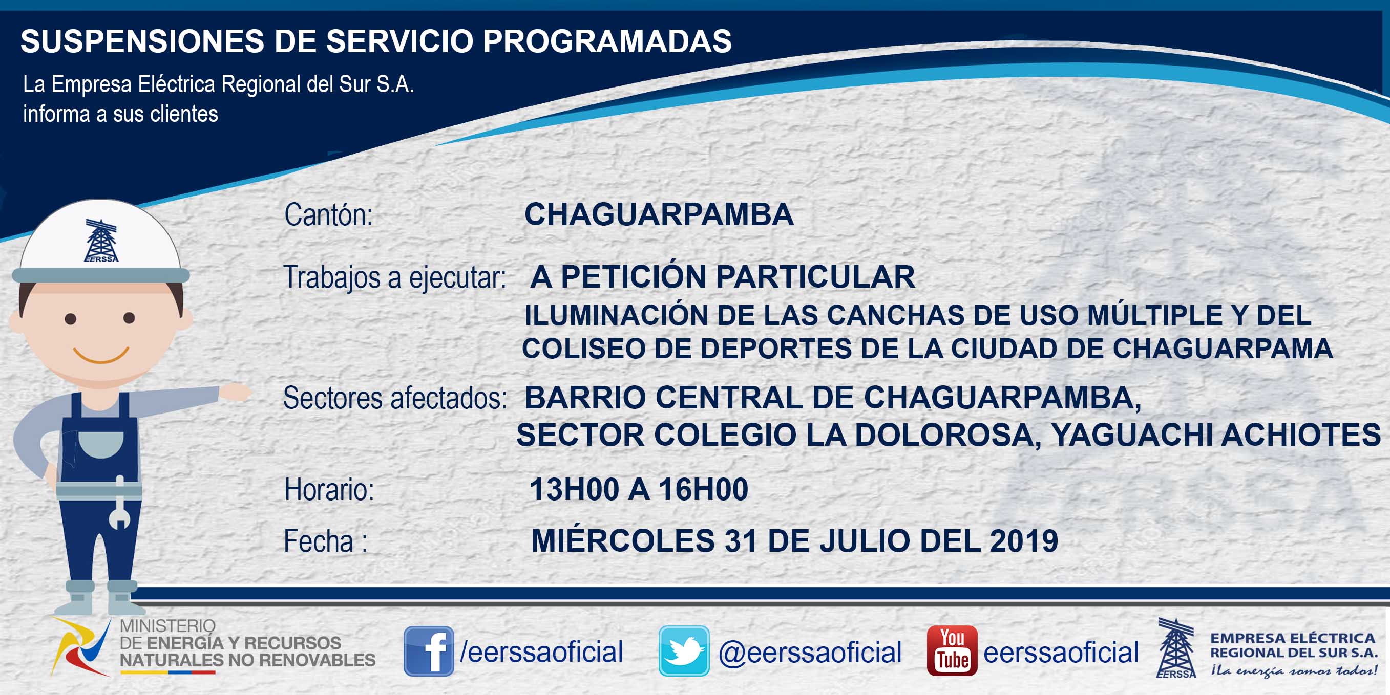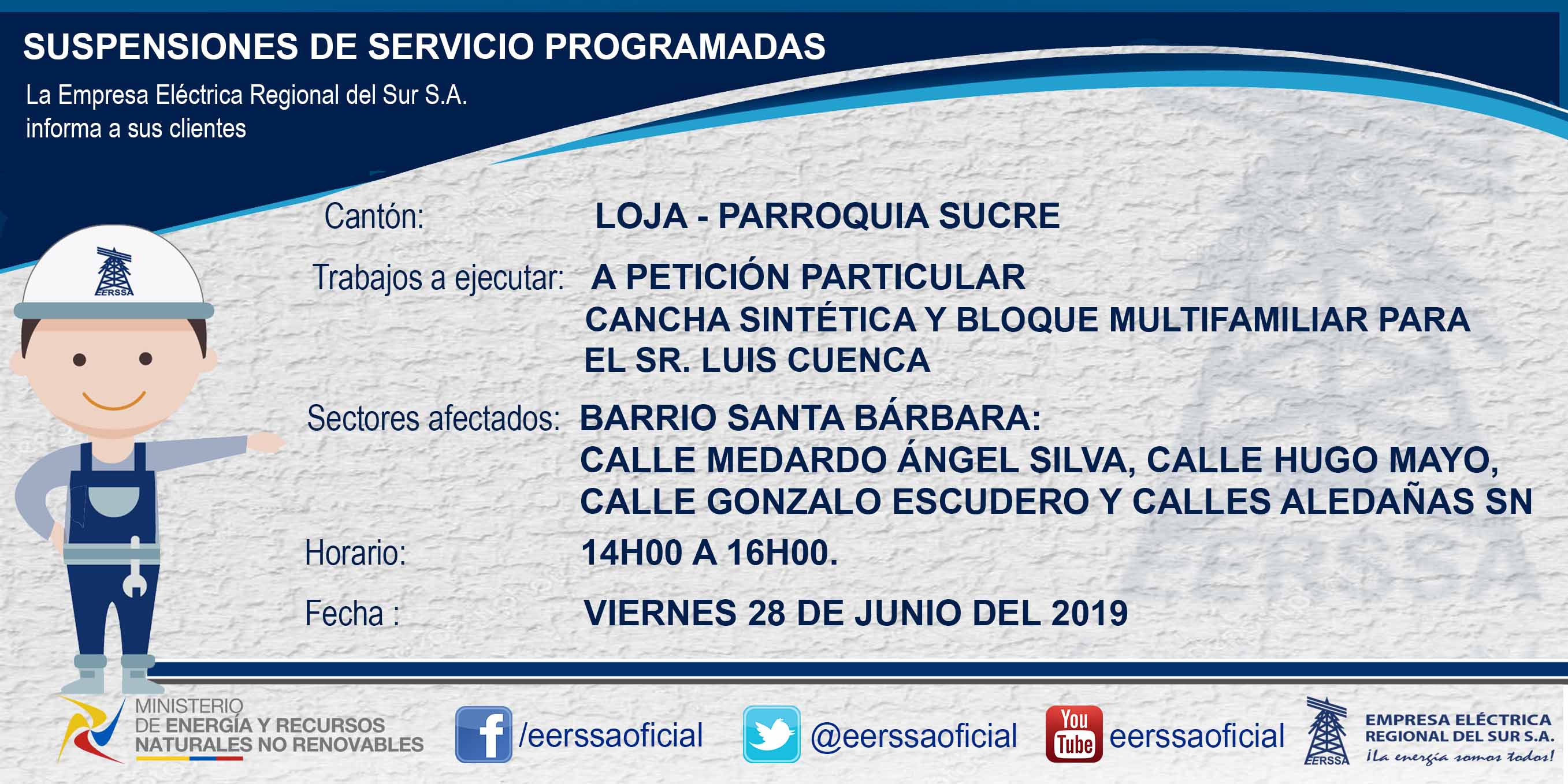 Suspensiones programadas 29 de dic Macará