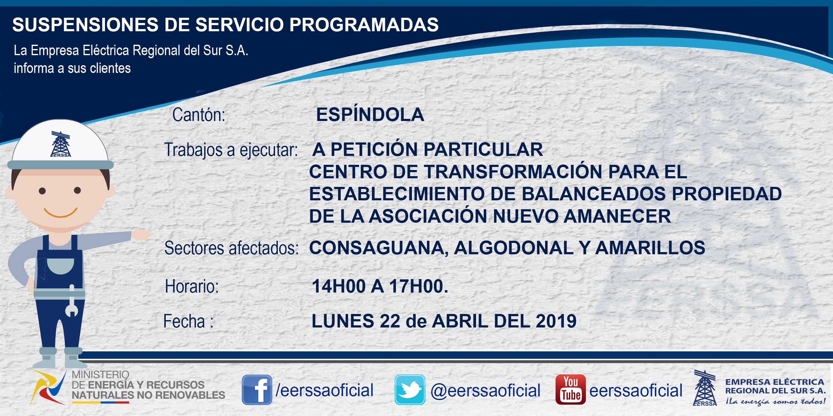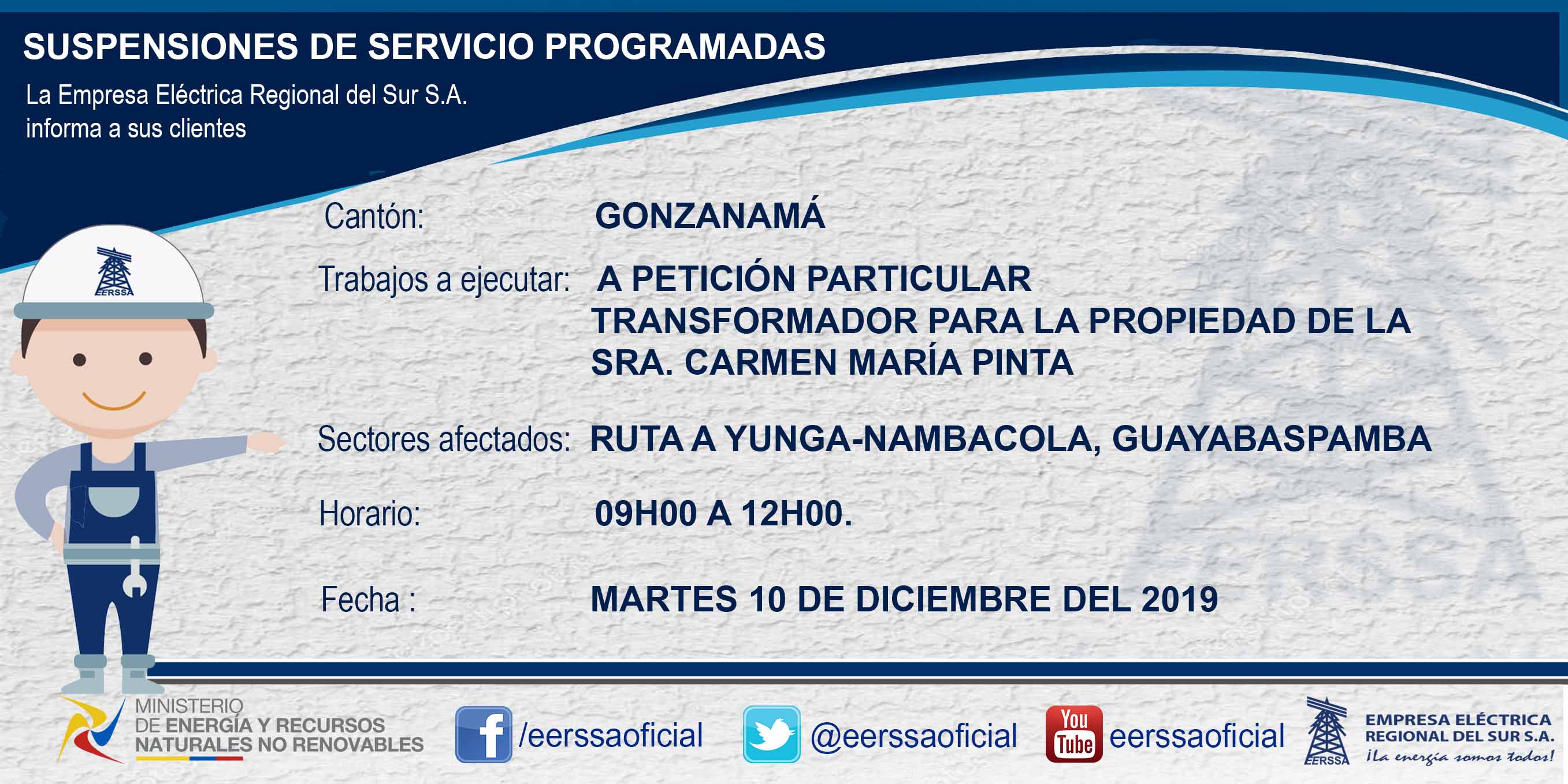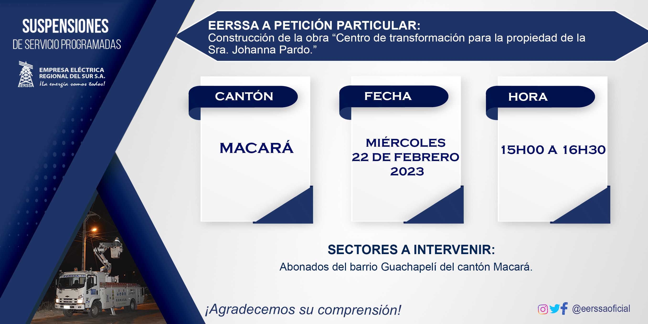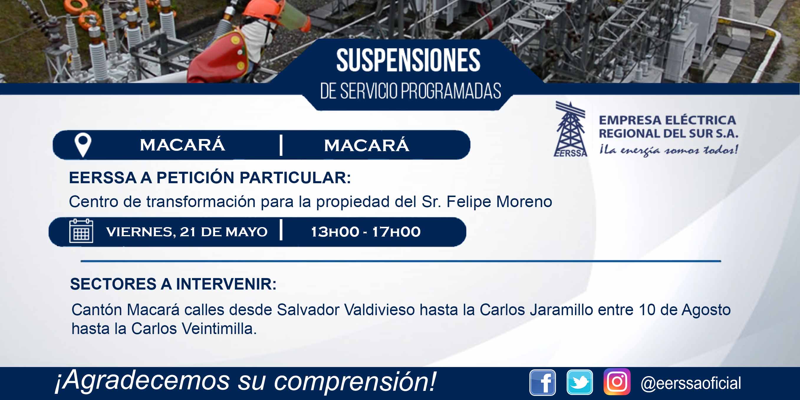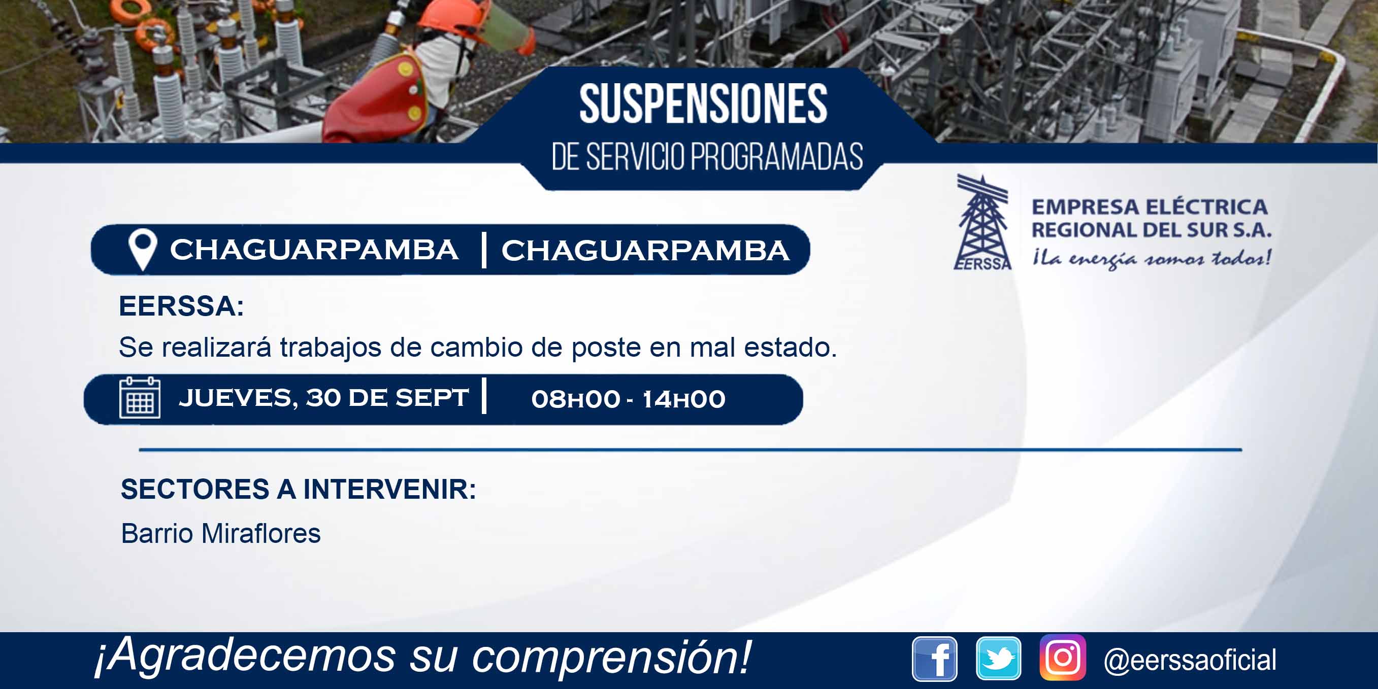 Suspensiones programadas 29 de dic Macará