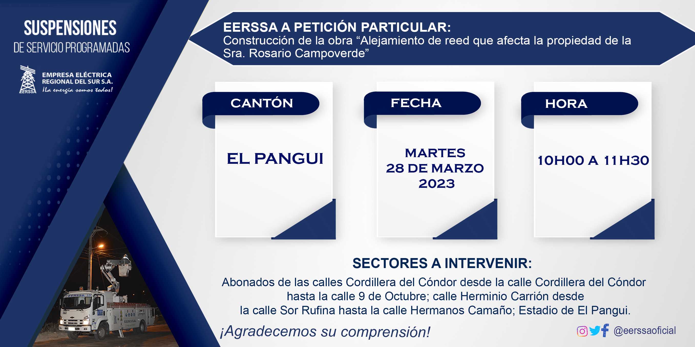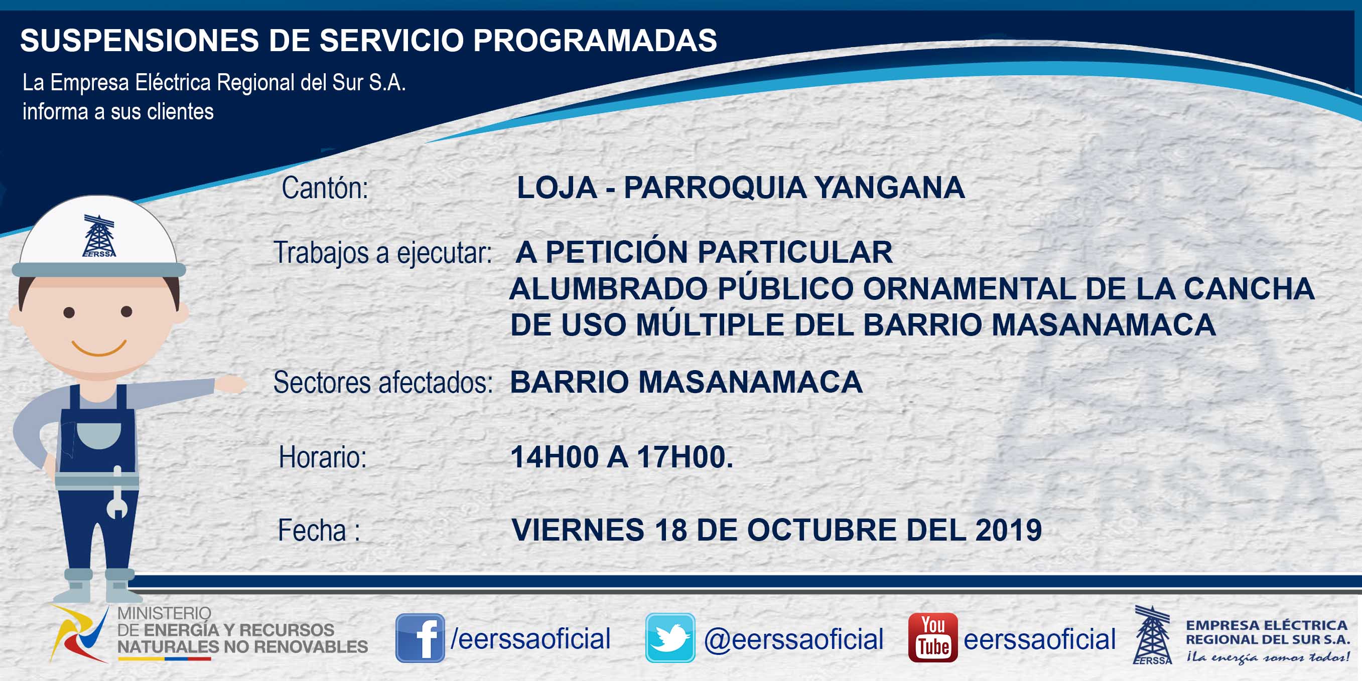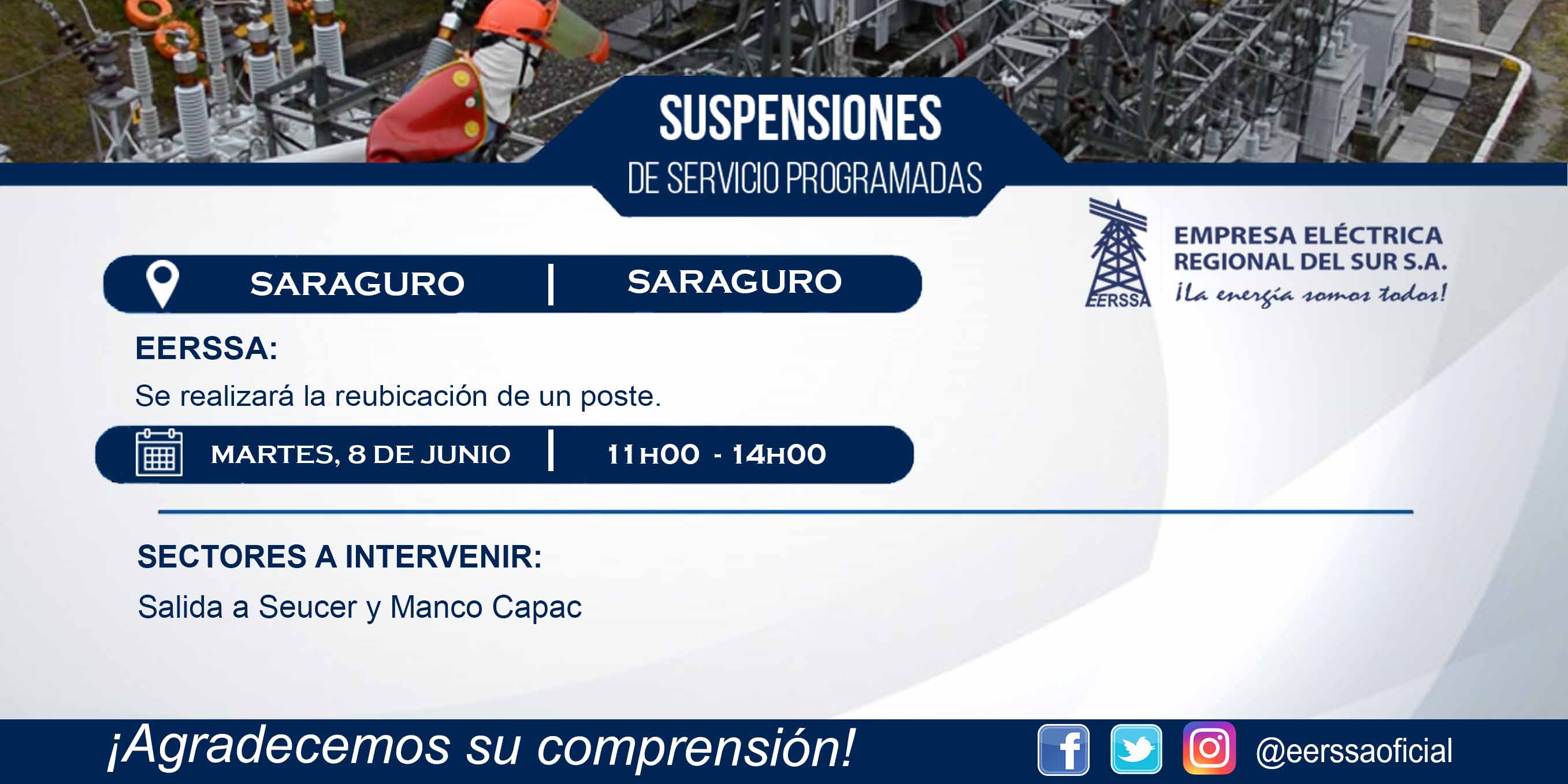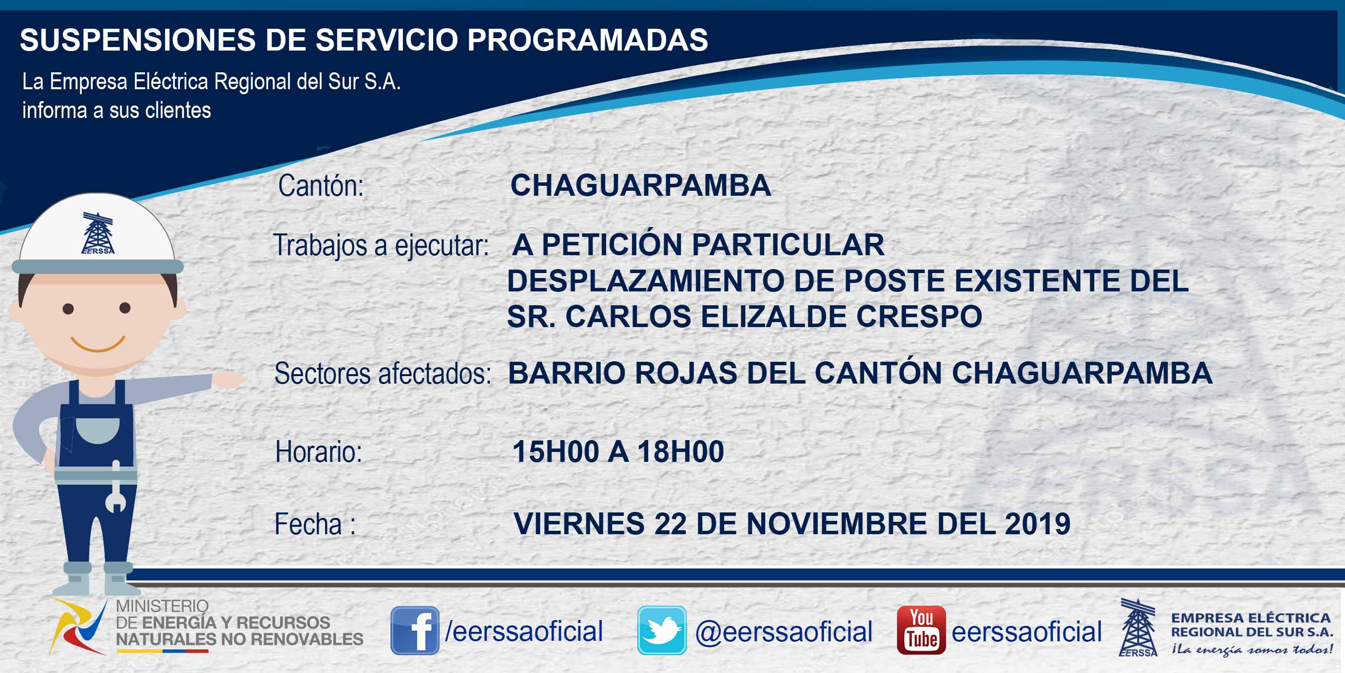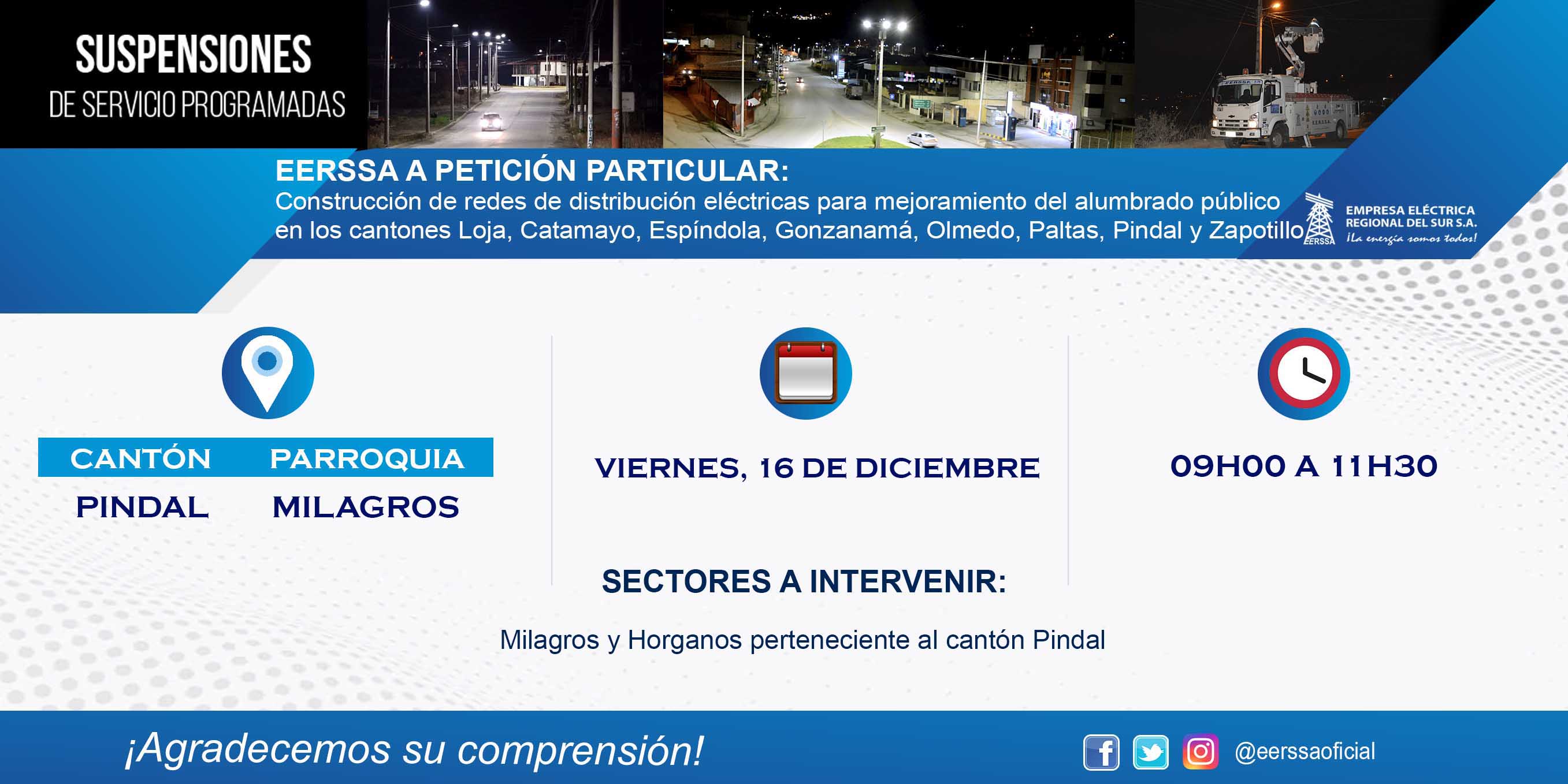 Suspensiones programadas 29 de dic Macará