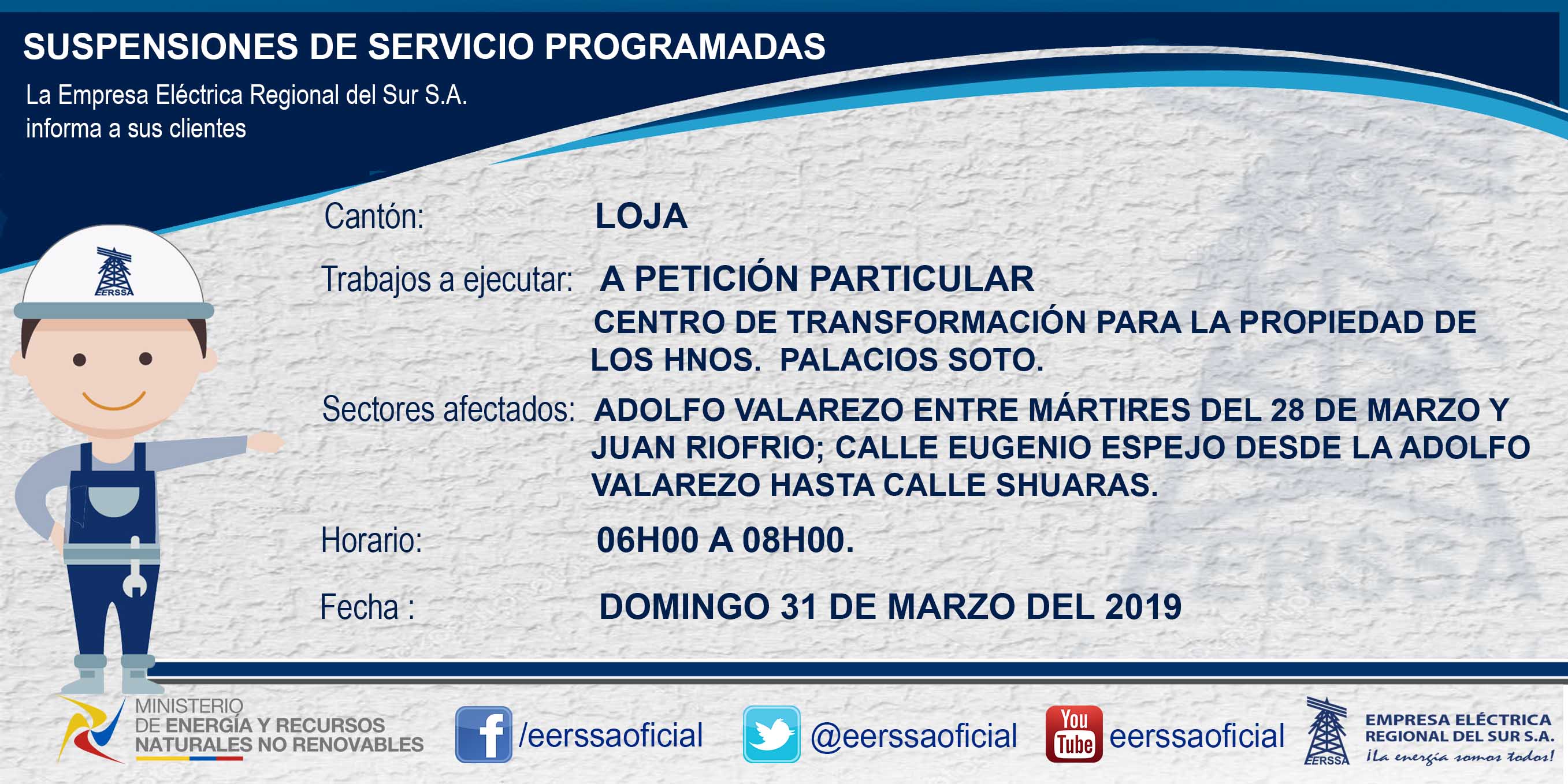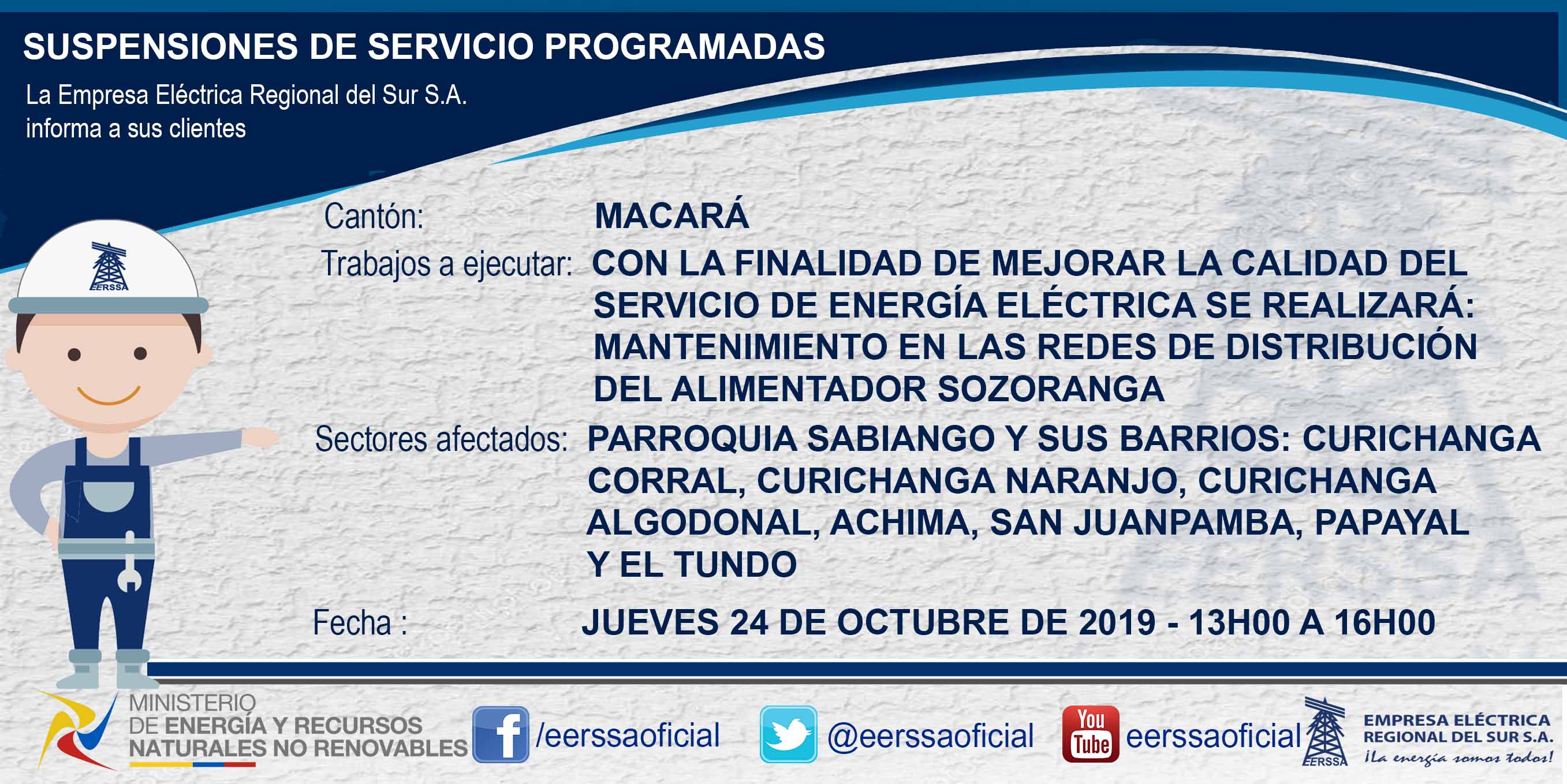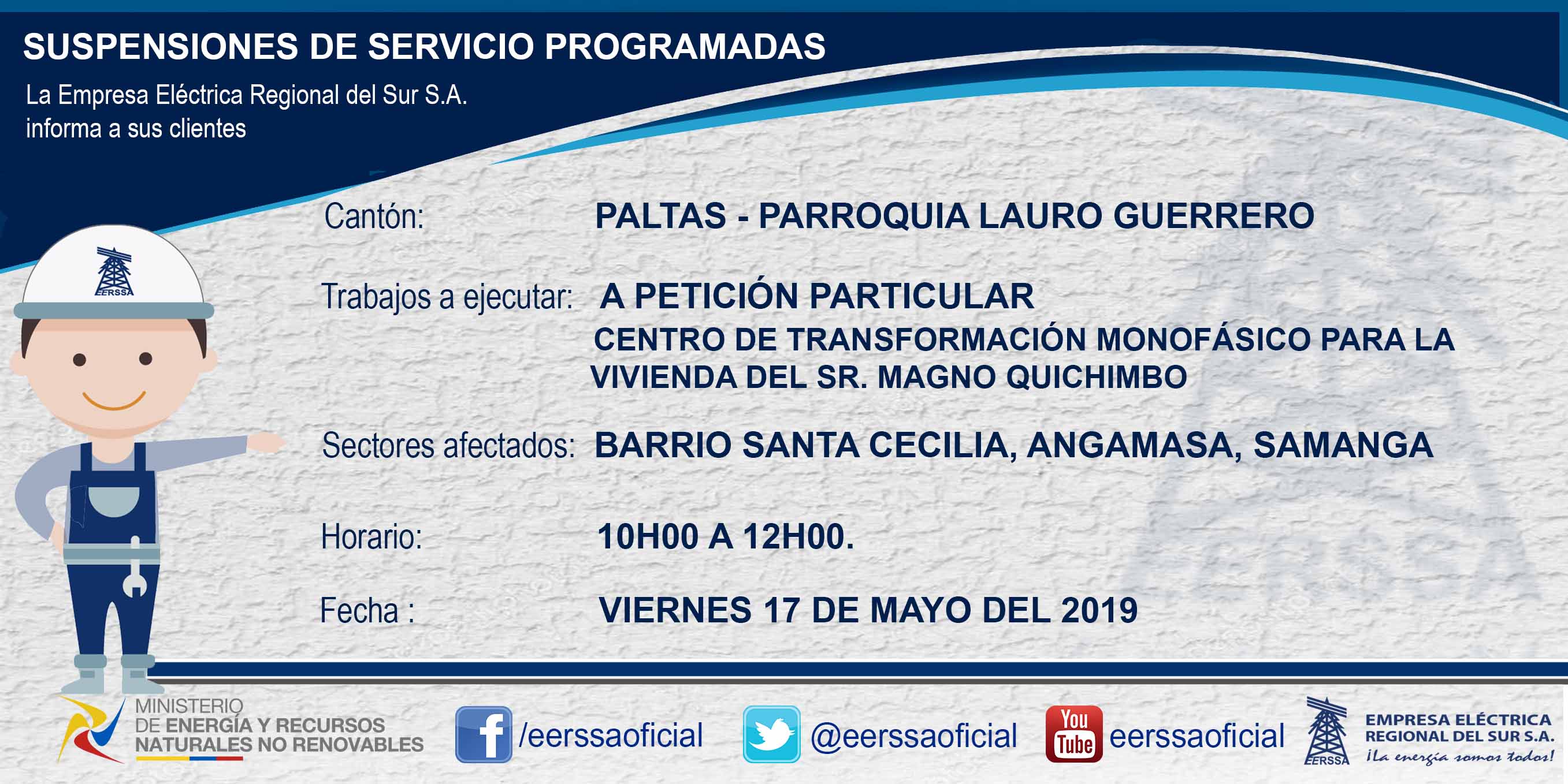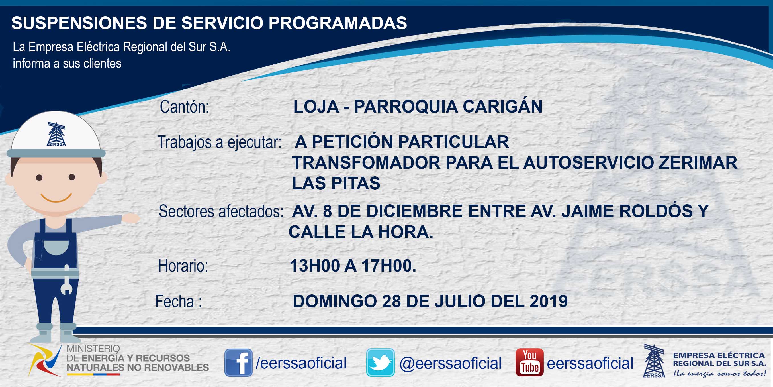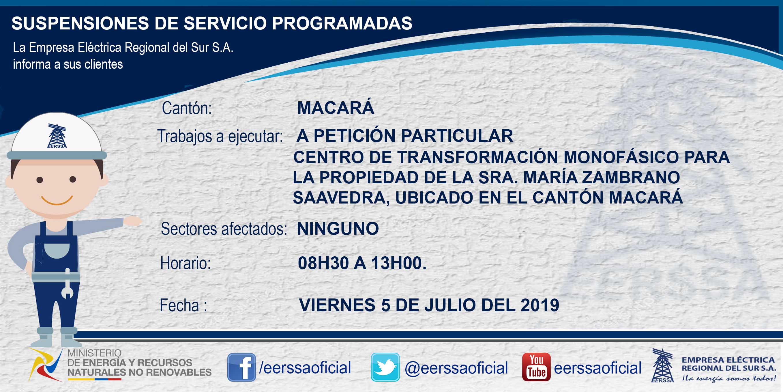 Suspensiones programadas 29 de dic Macará