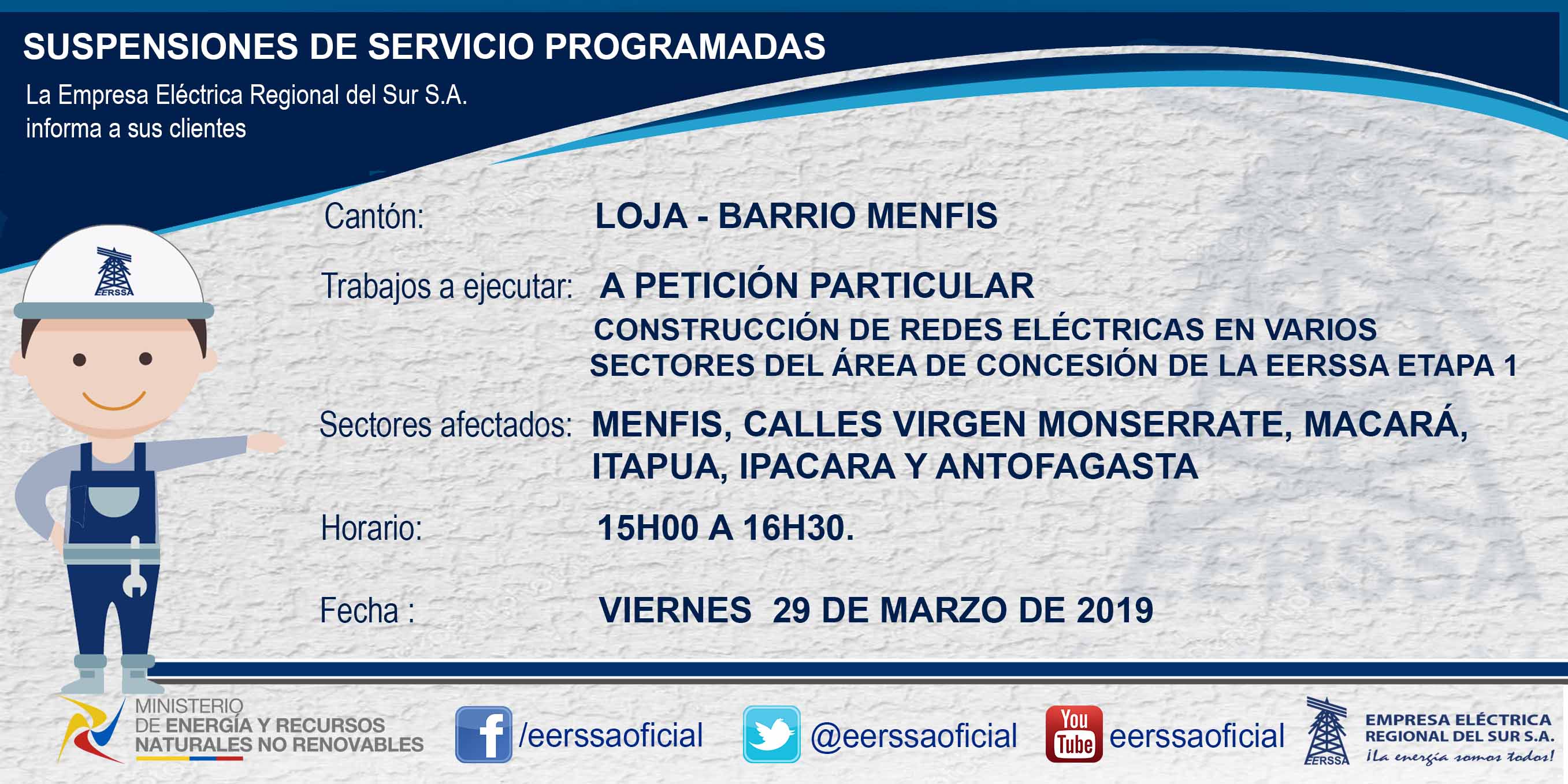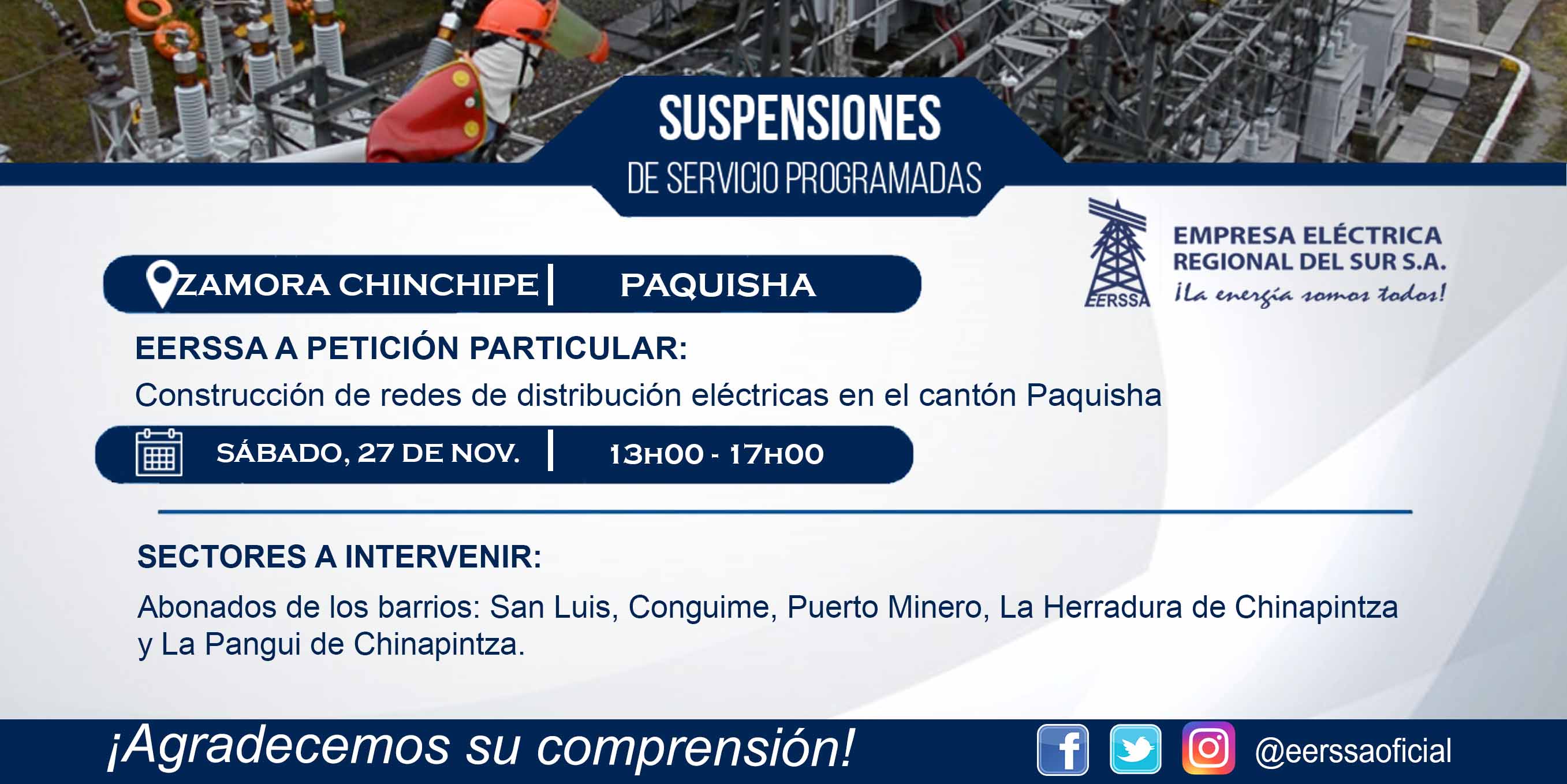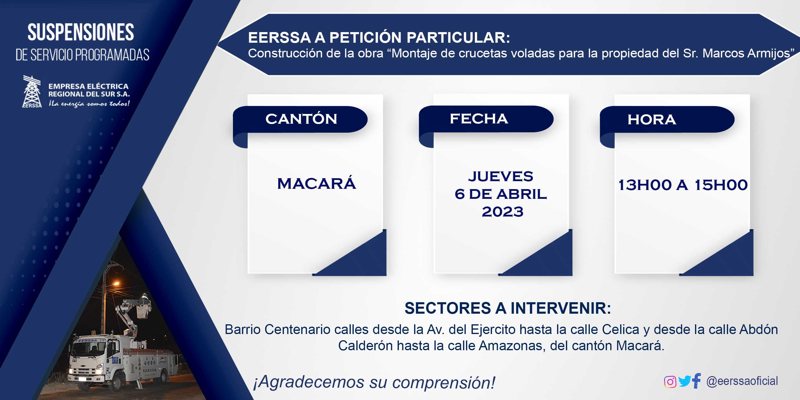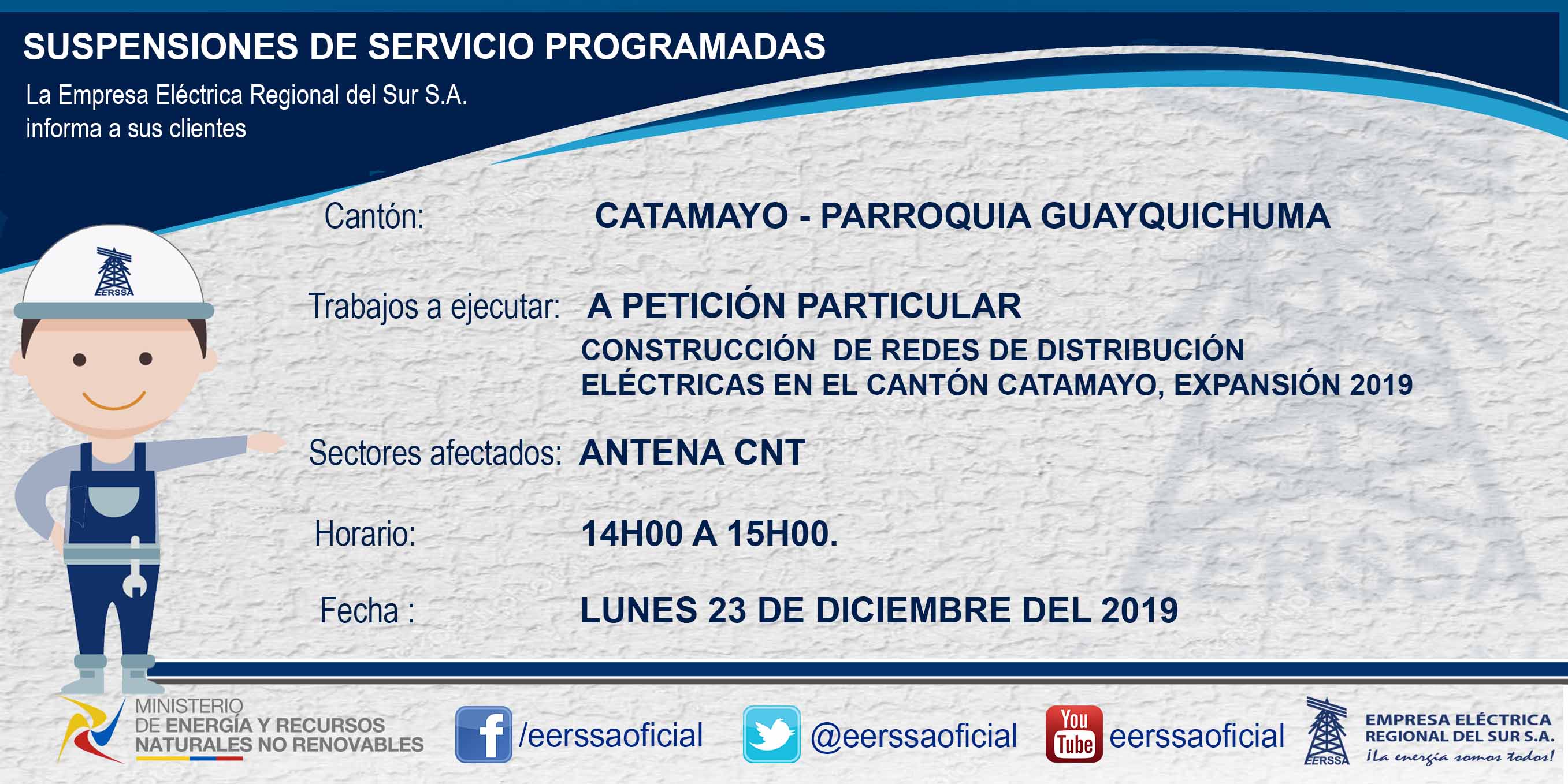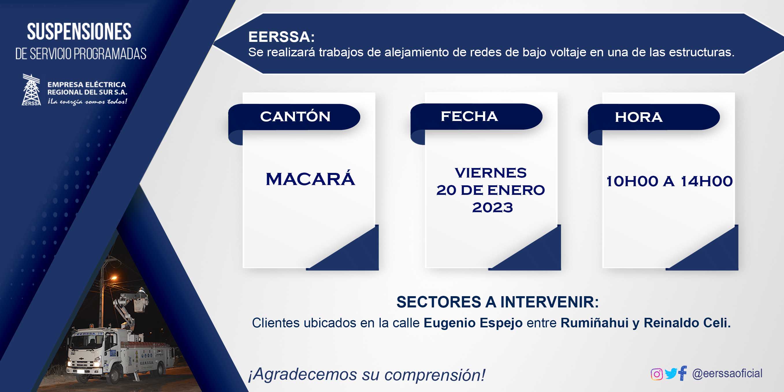 Suspensiones programadas 29 de dic Macará