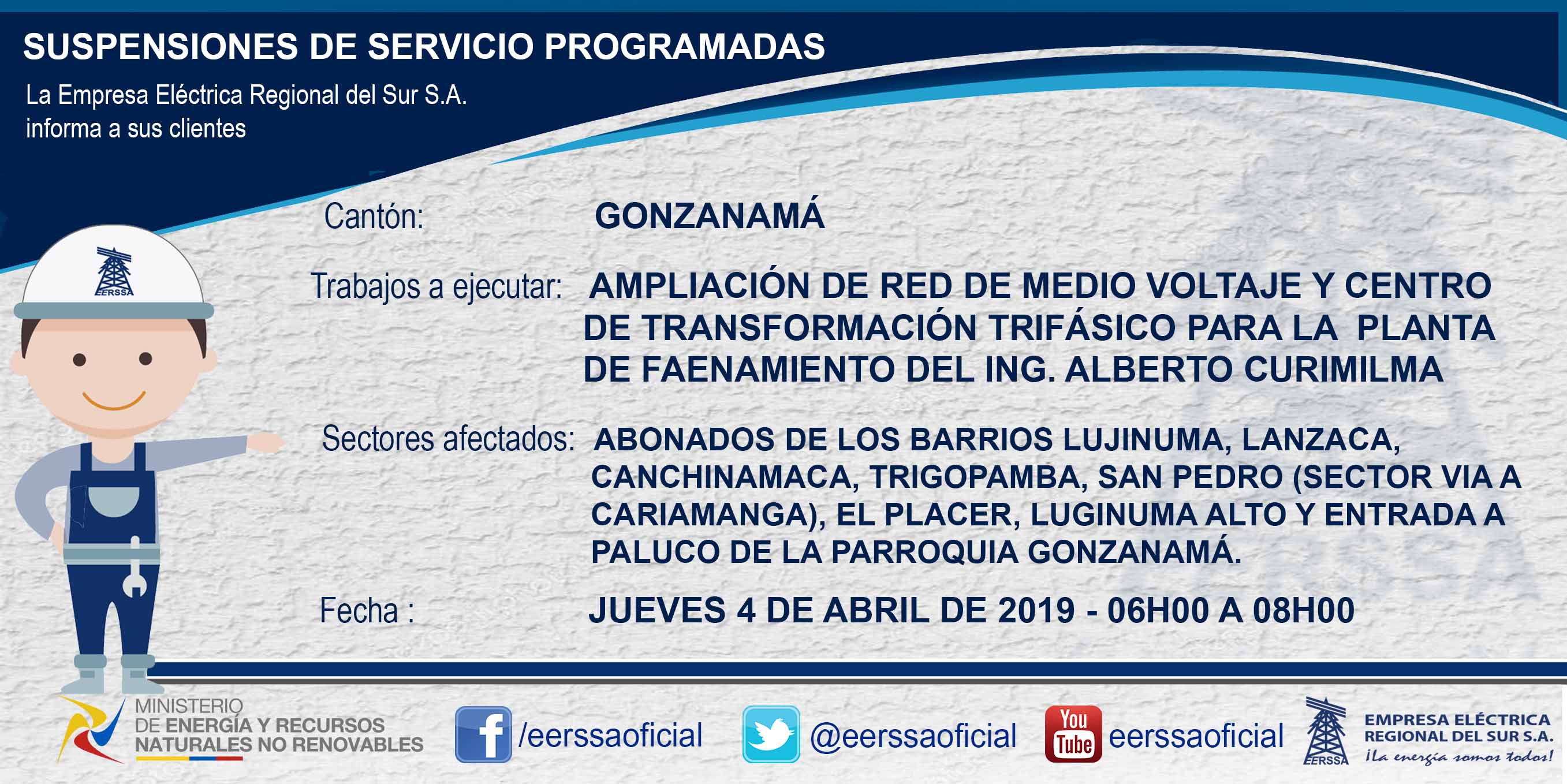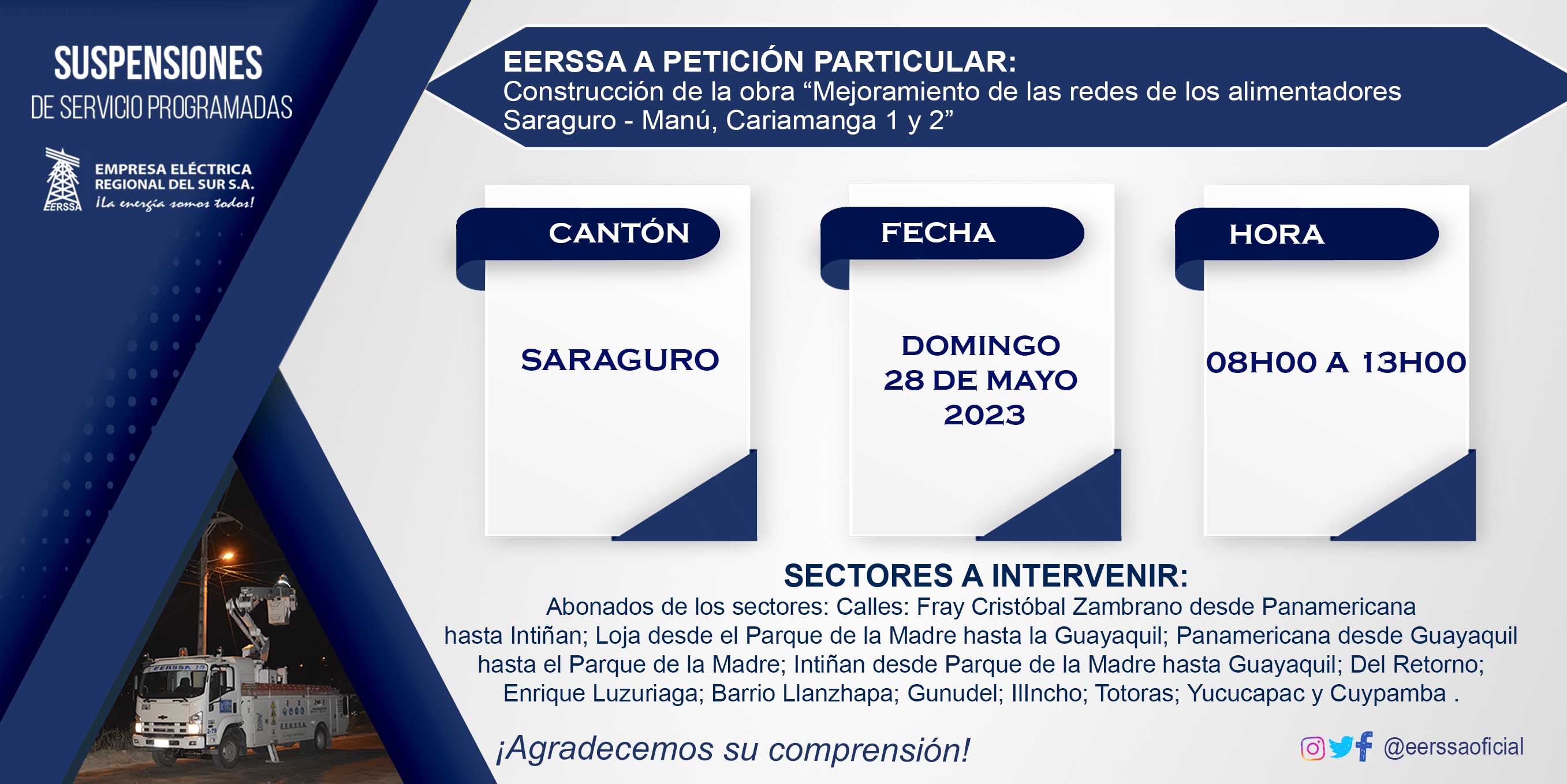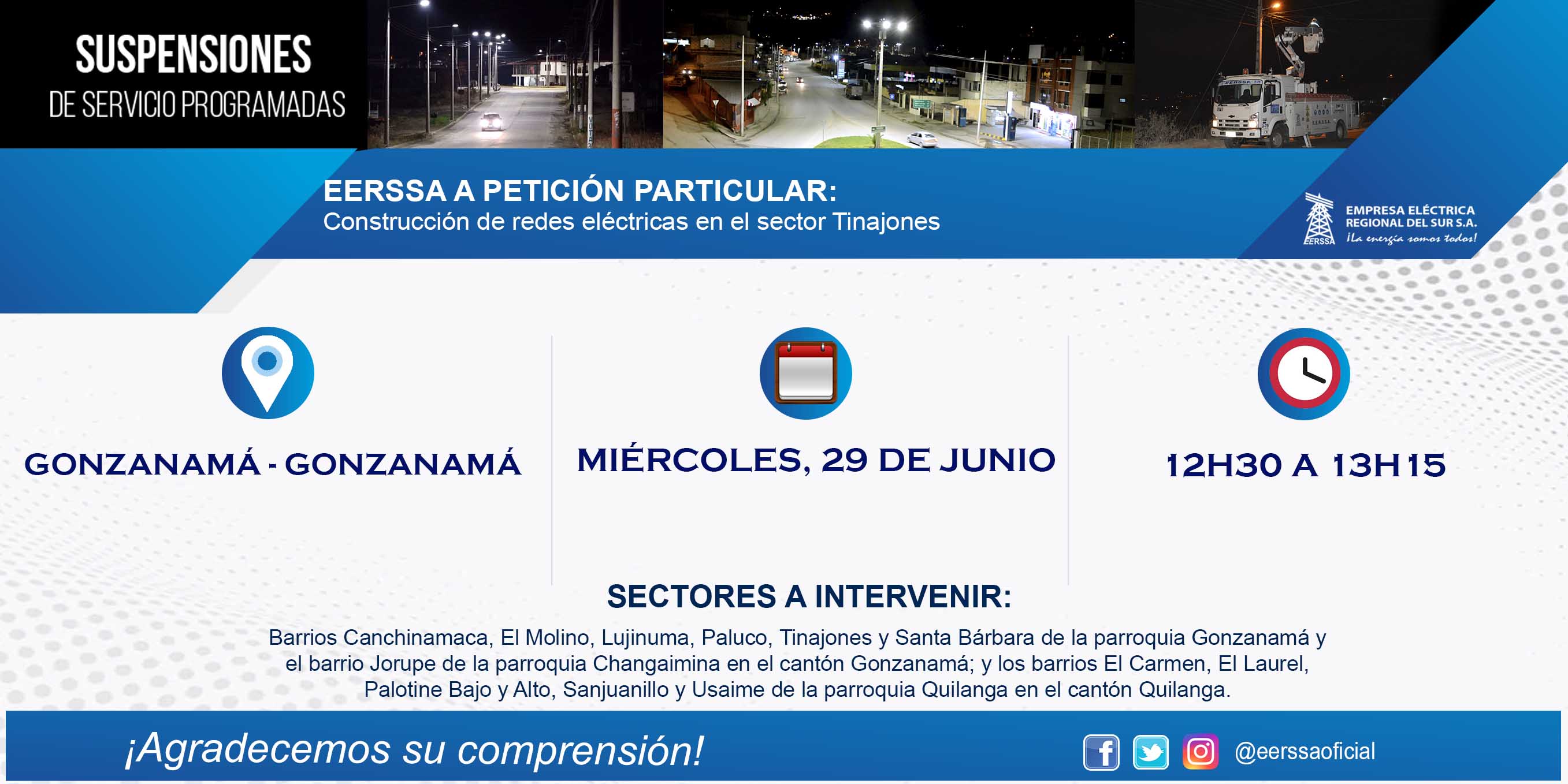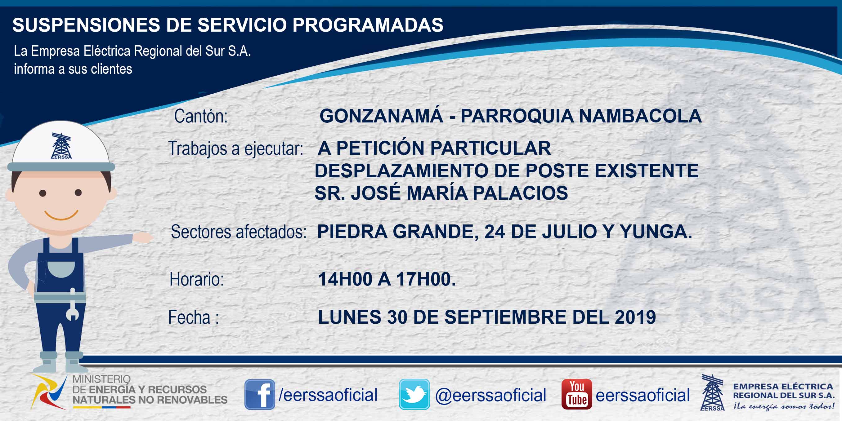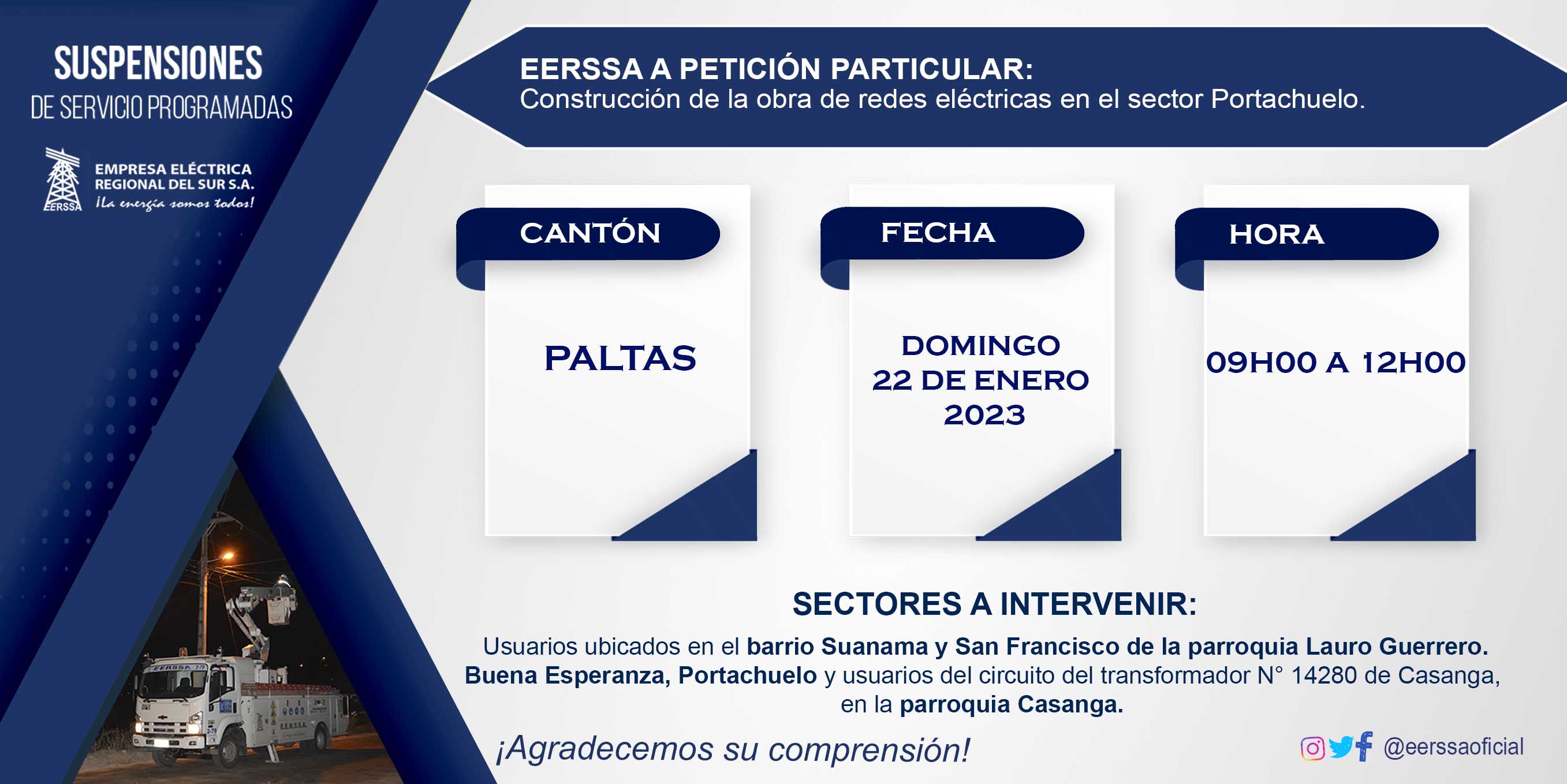Suspensiones programadas 29 de dic Macará