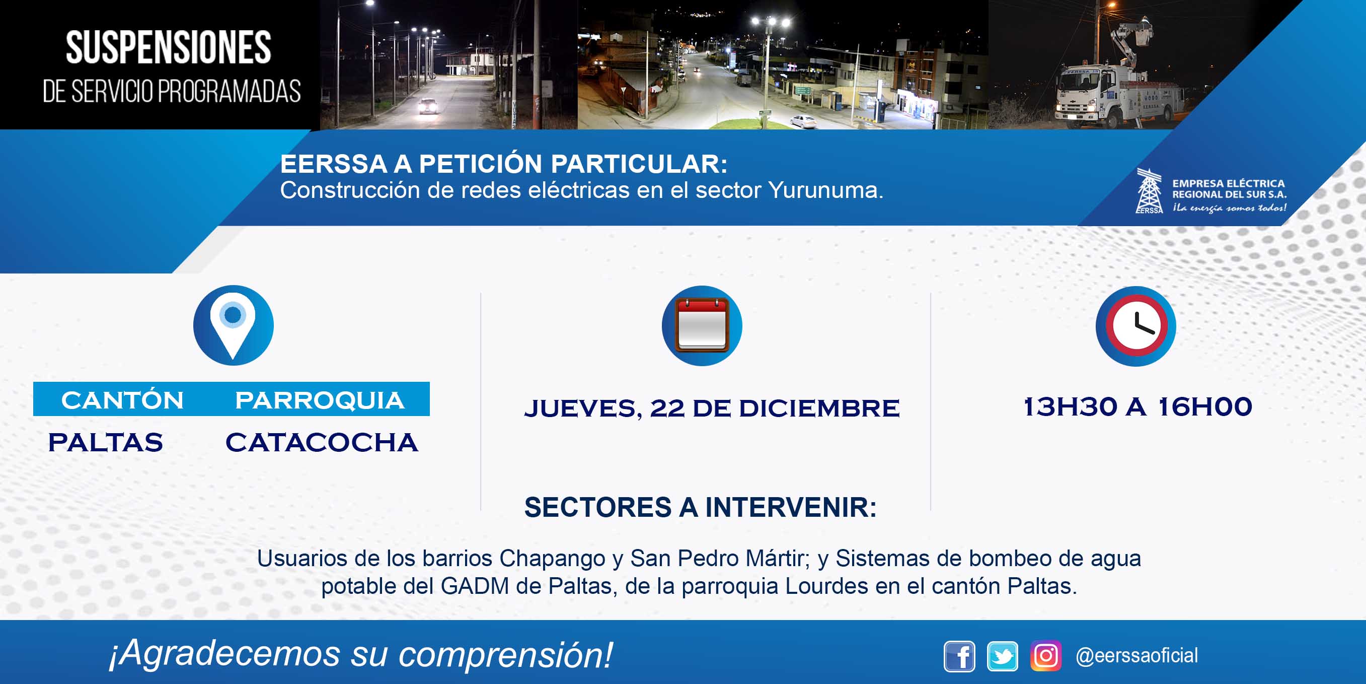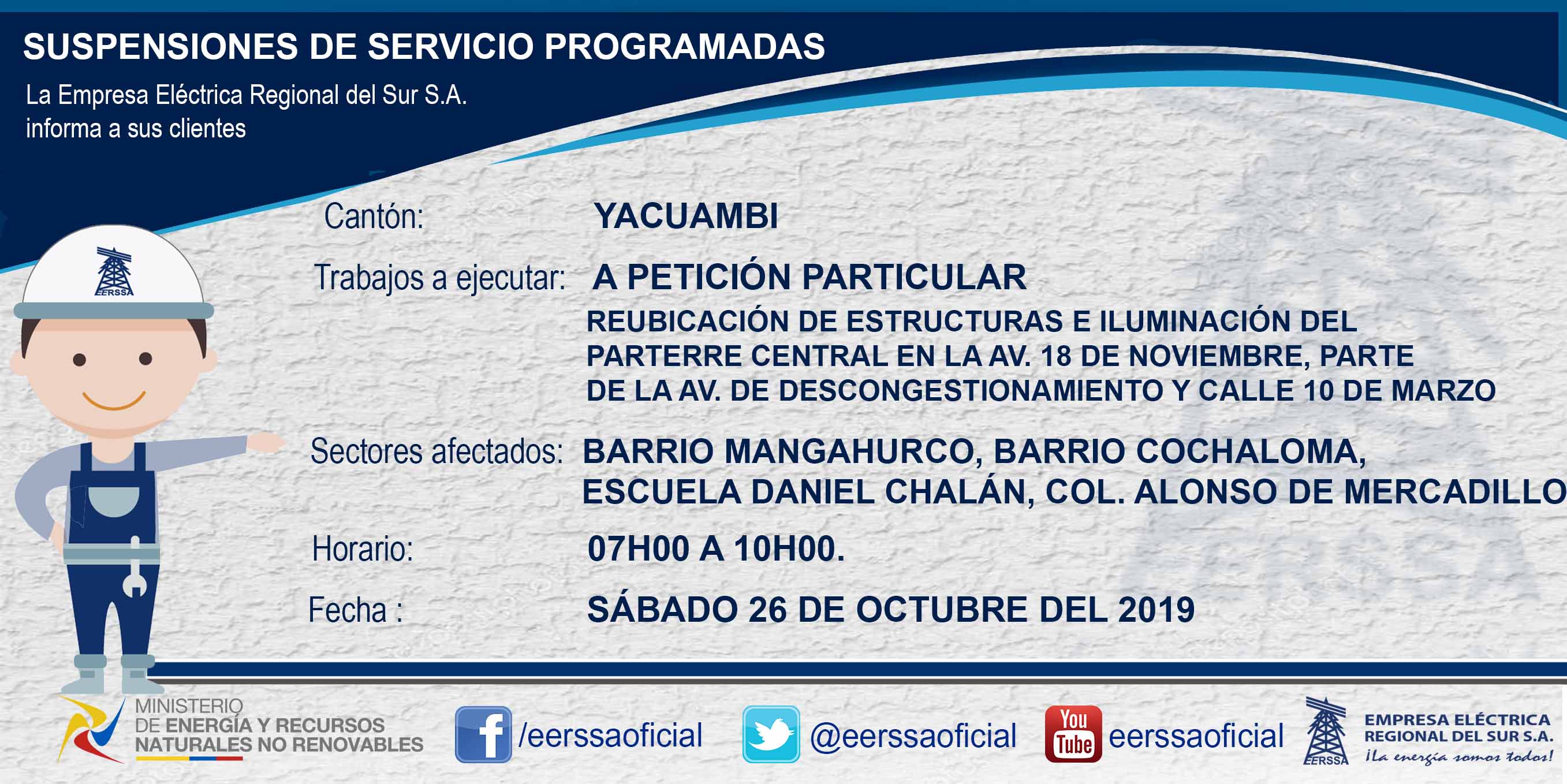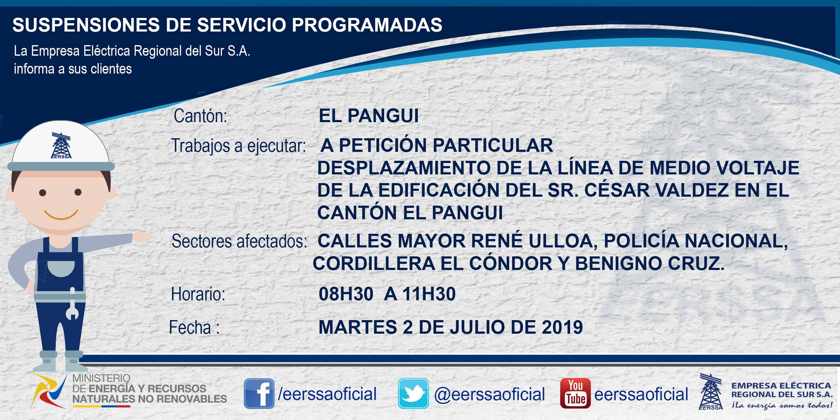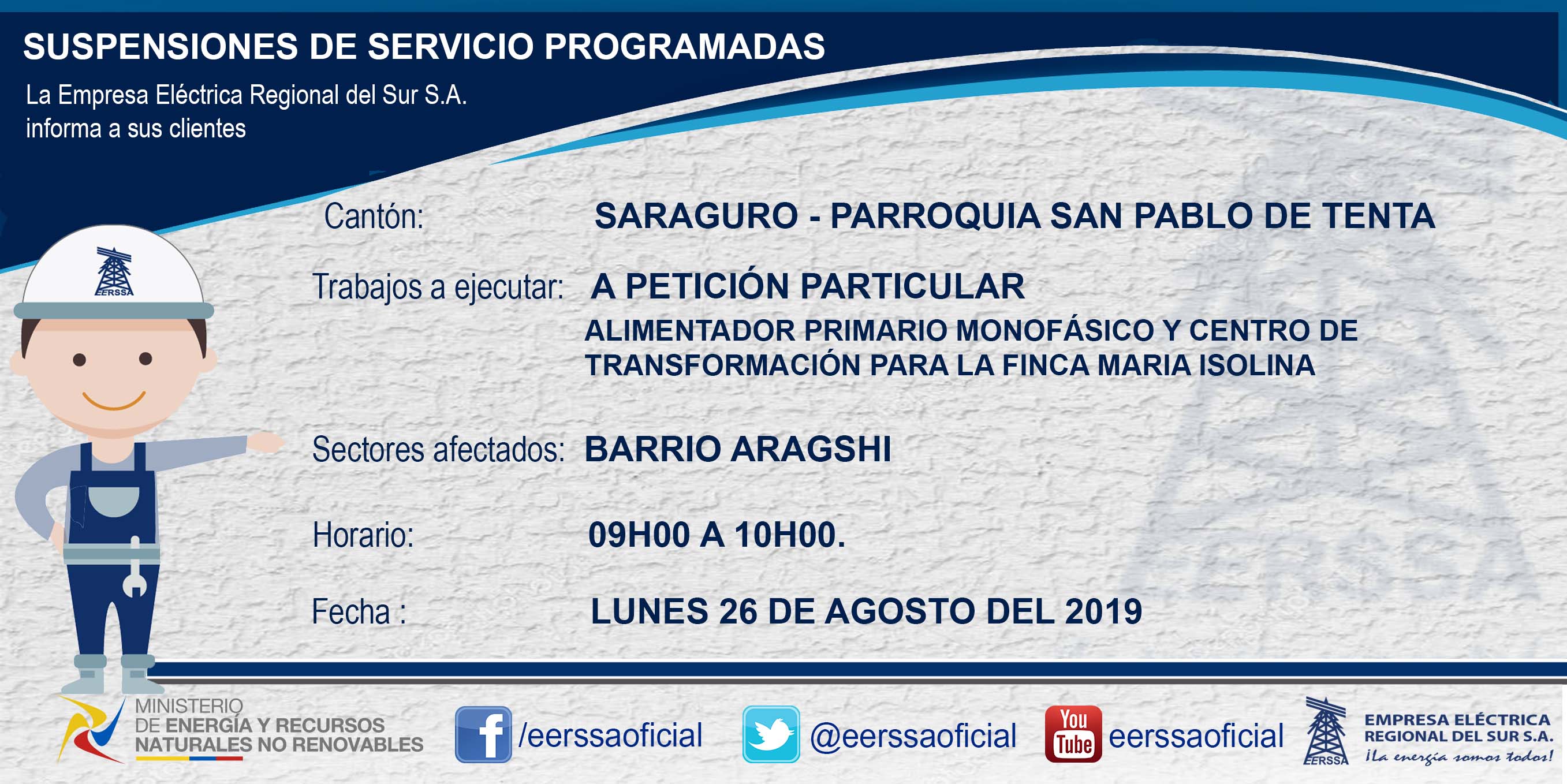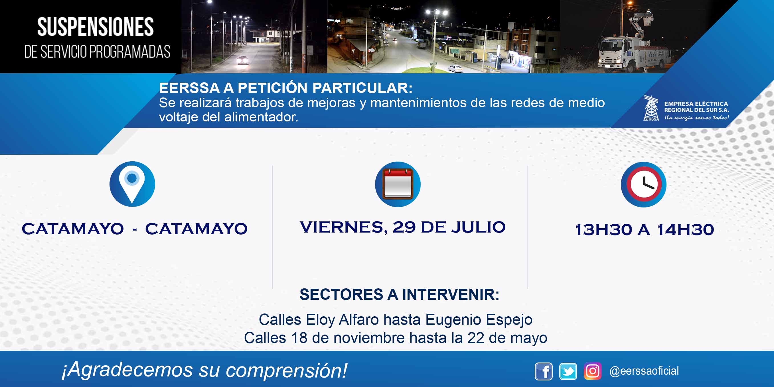 Suspensiones programadas 29 de dic Macará