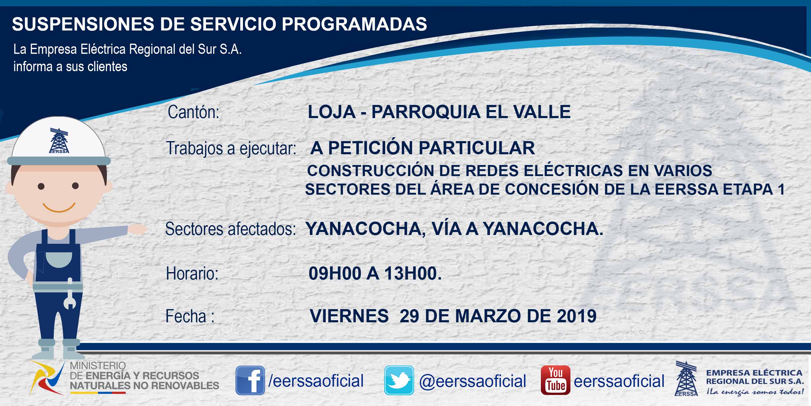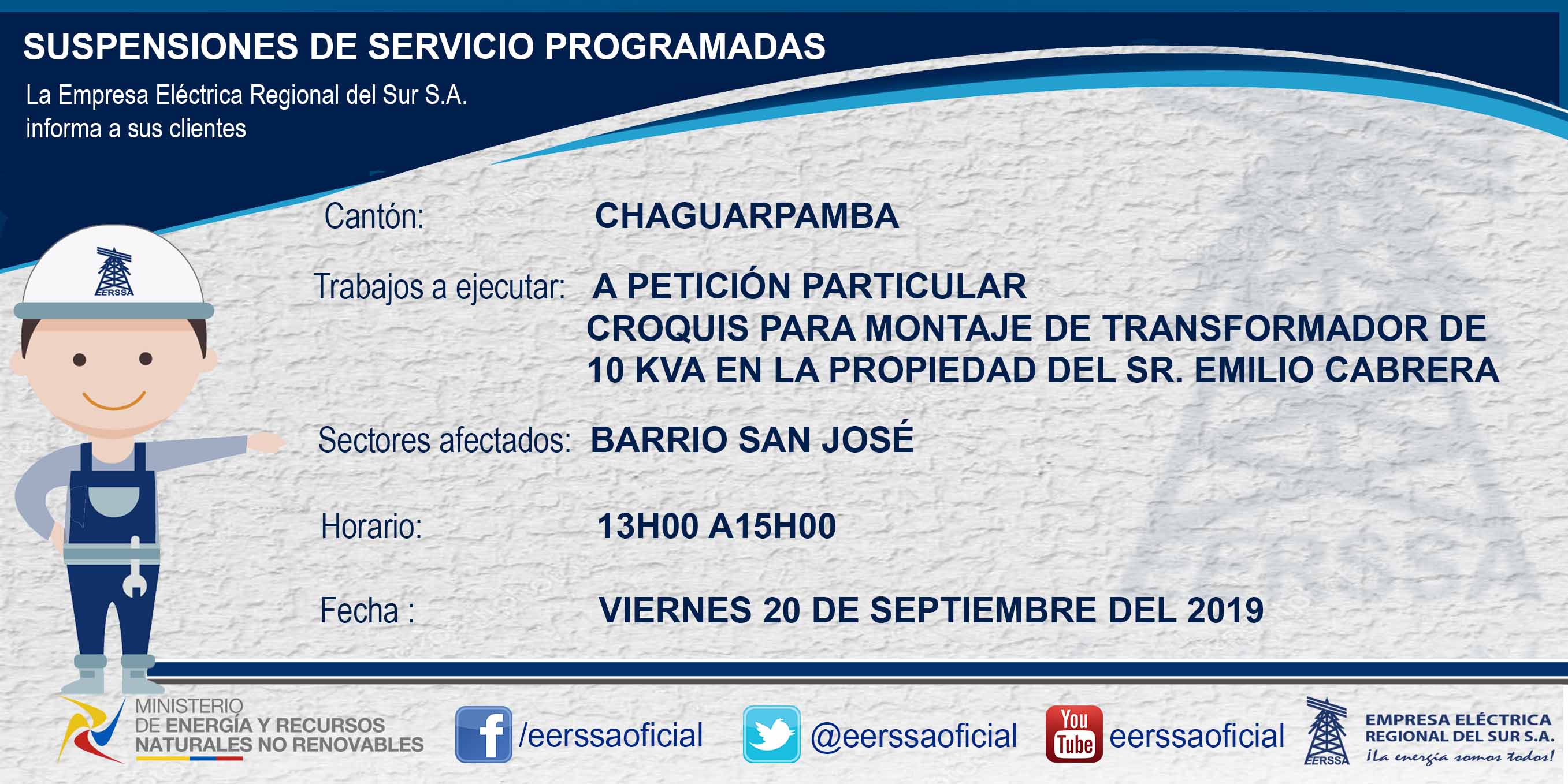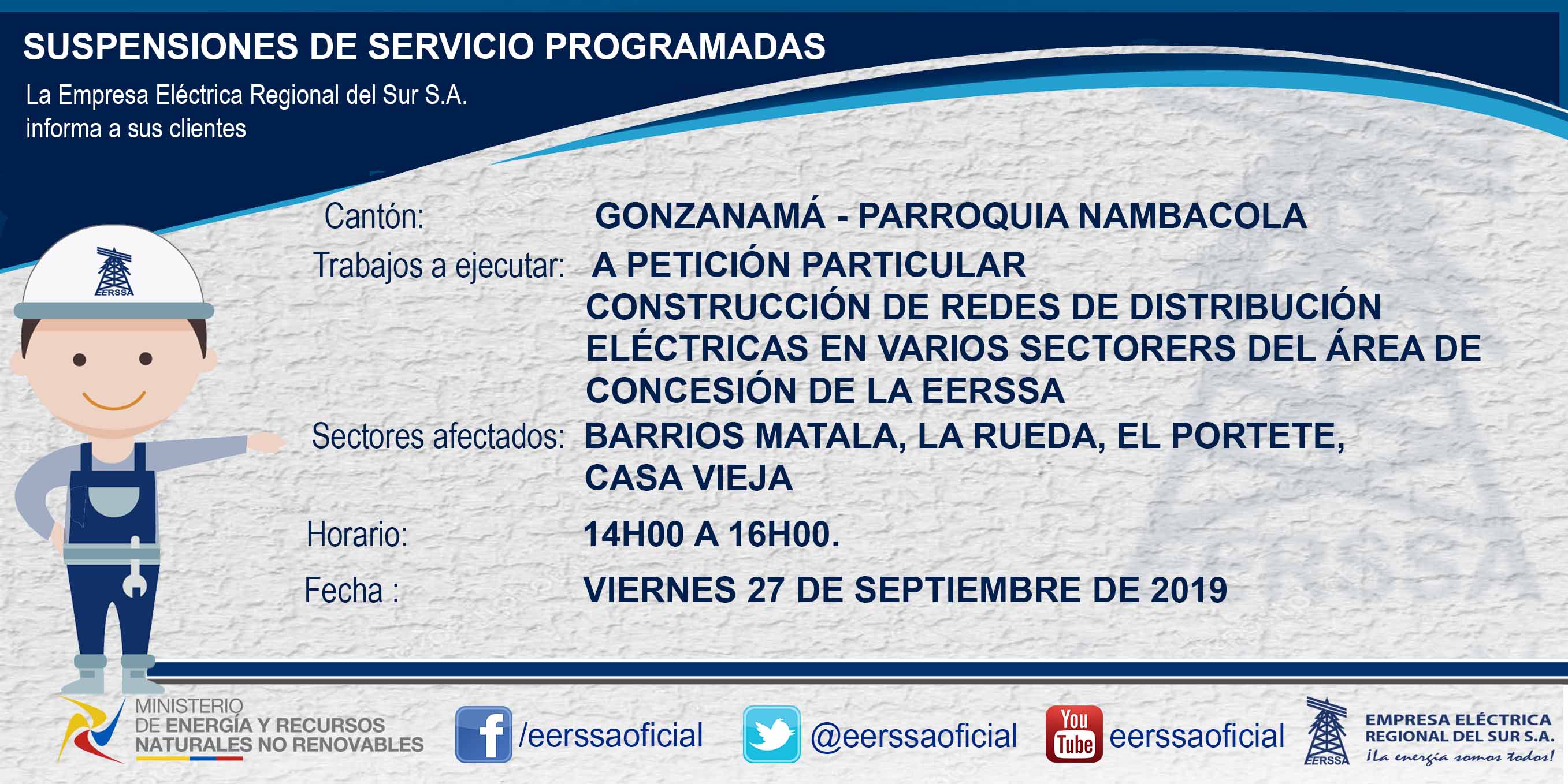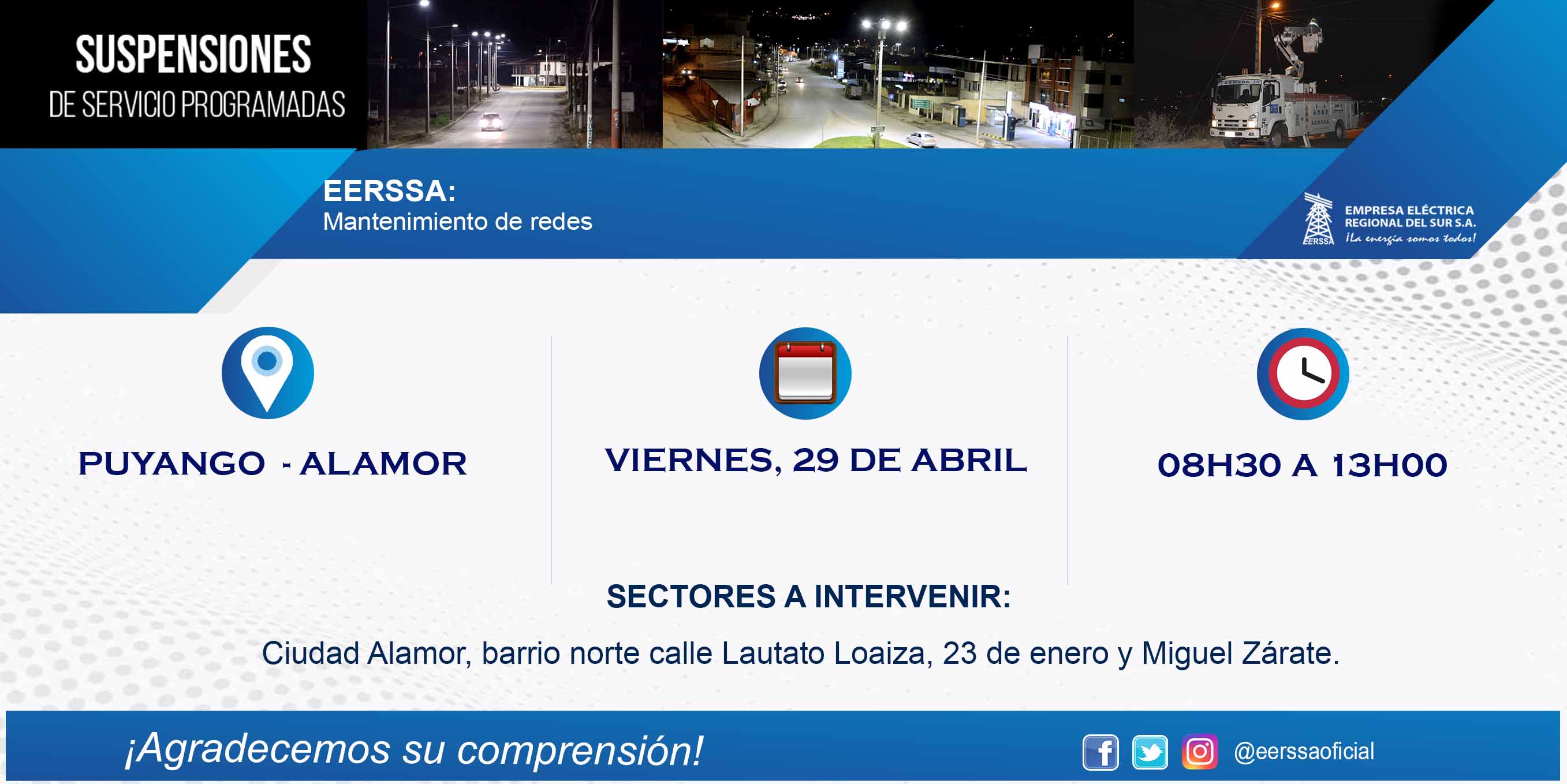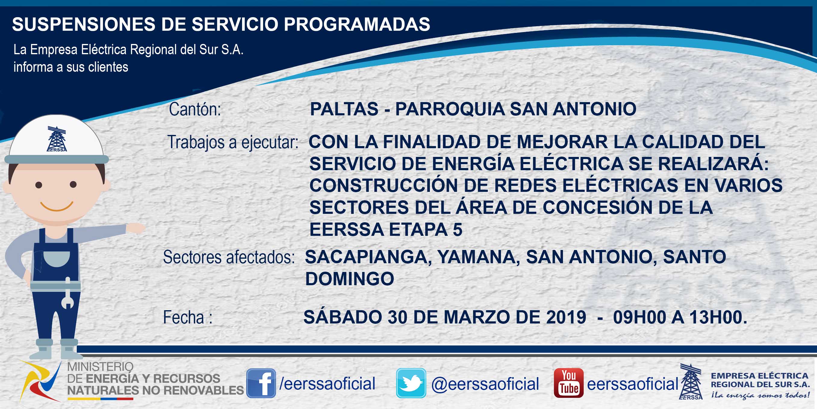 Suspensiones programadas 29 de dic Macará