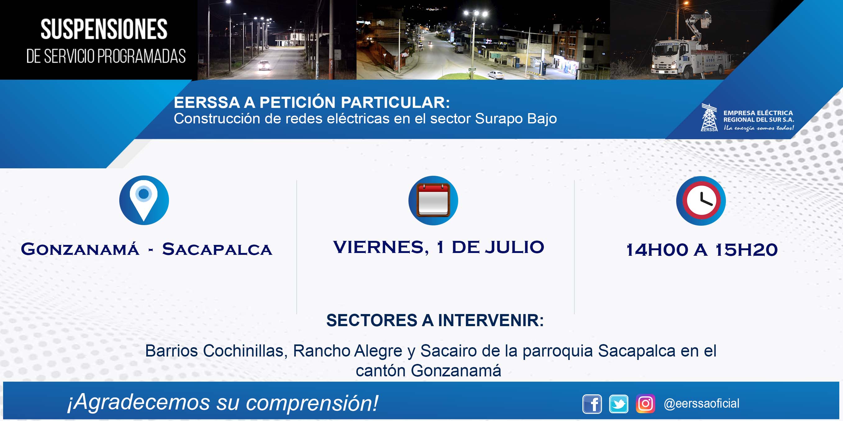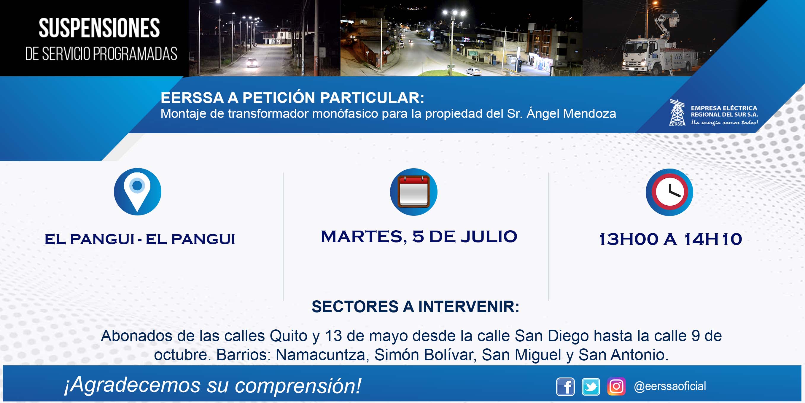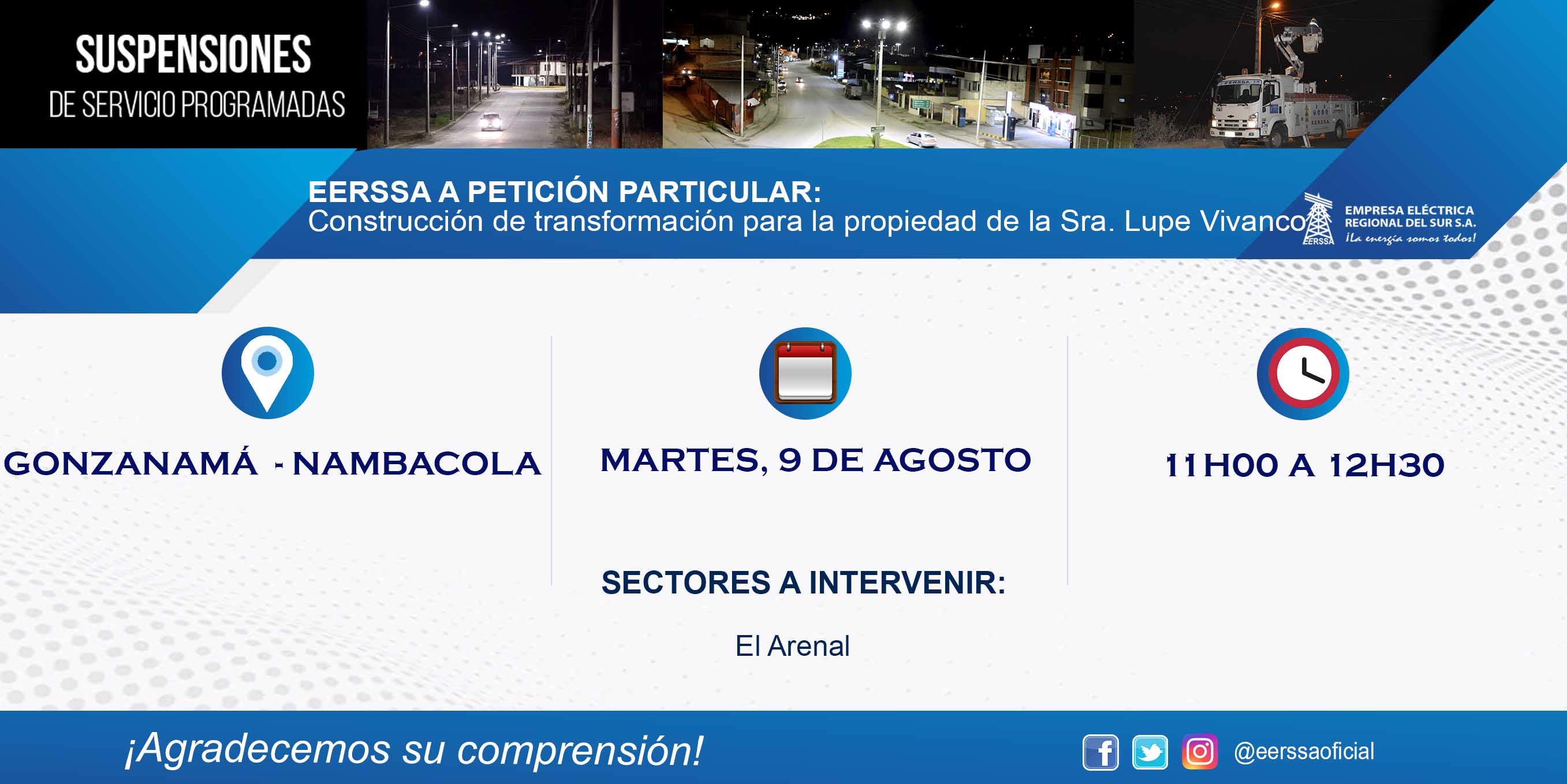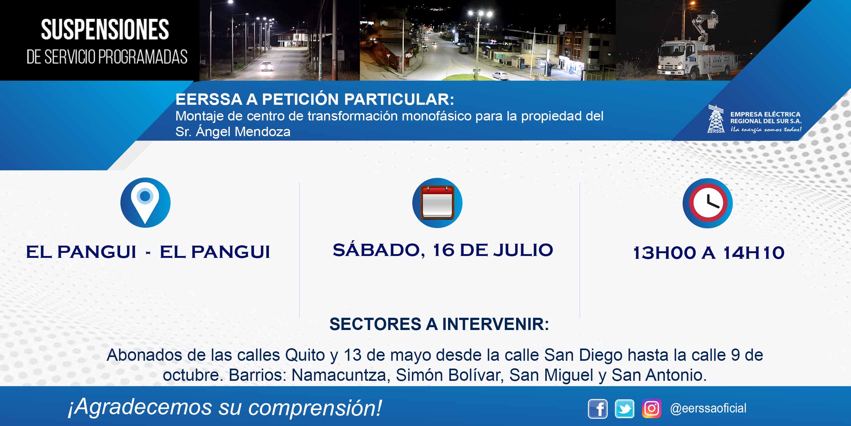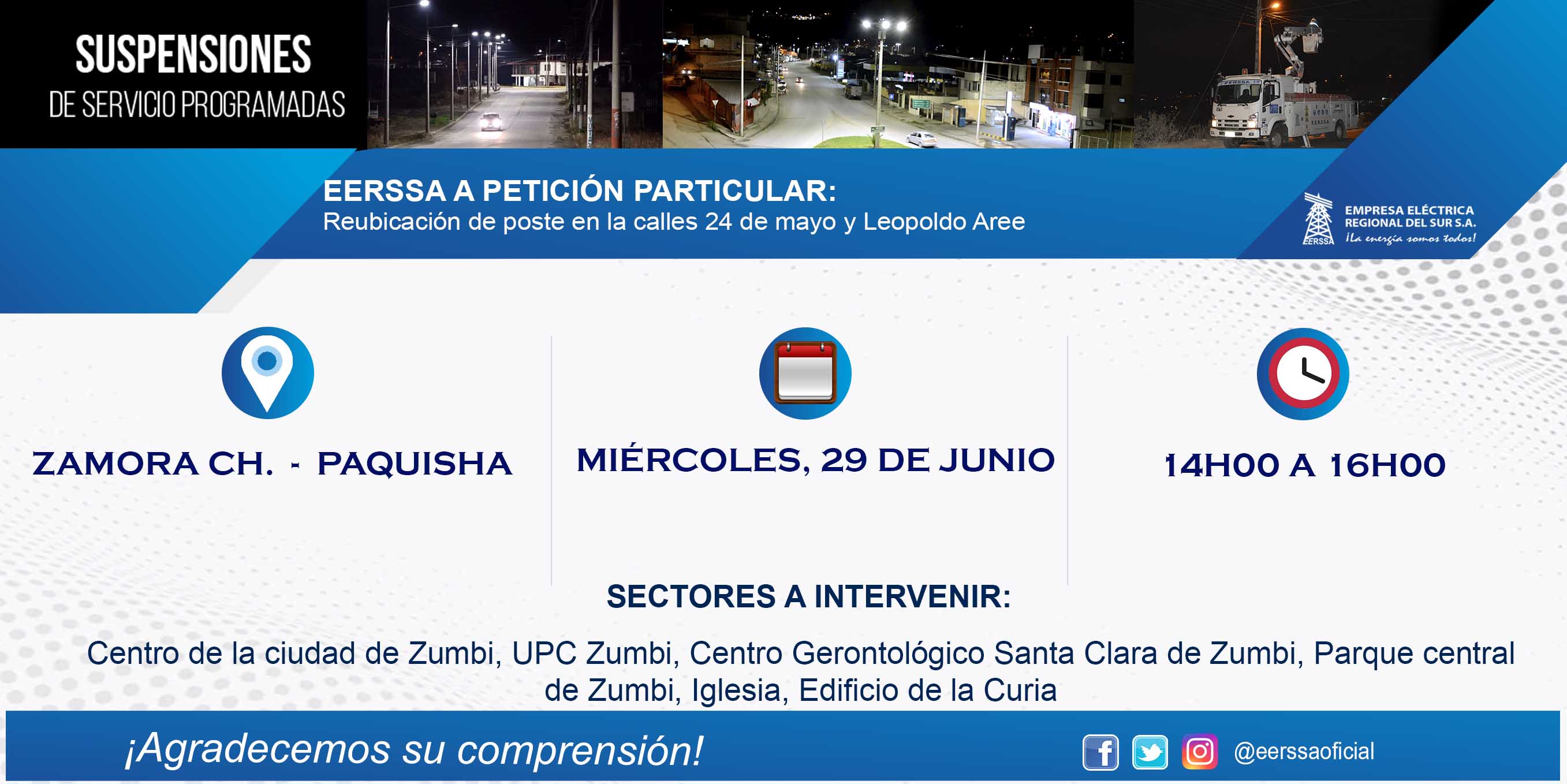 Suspensiones programadas 29 de dic Macará
