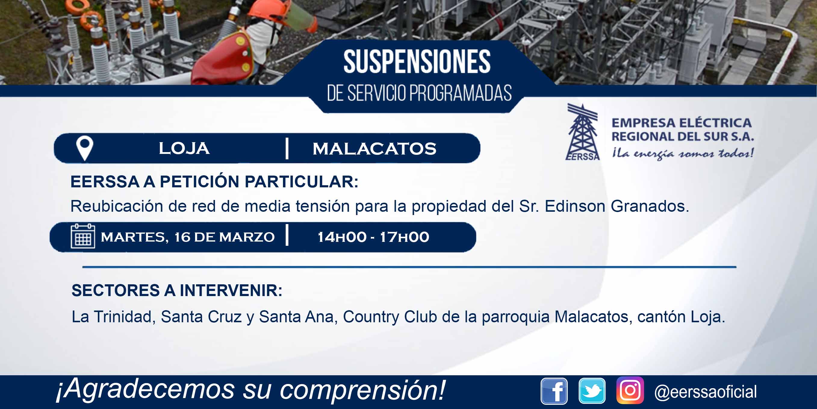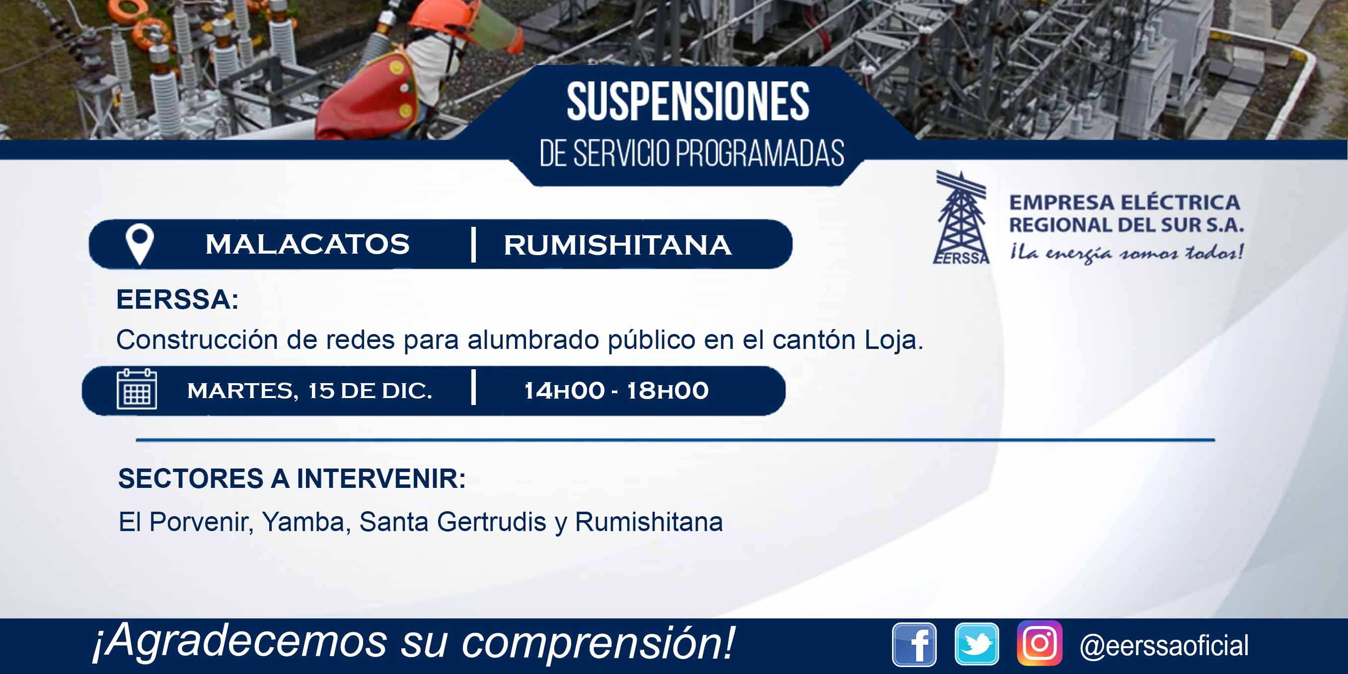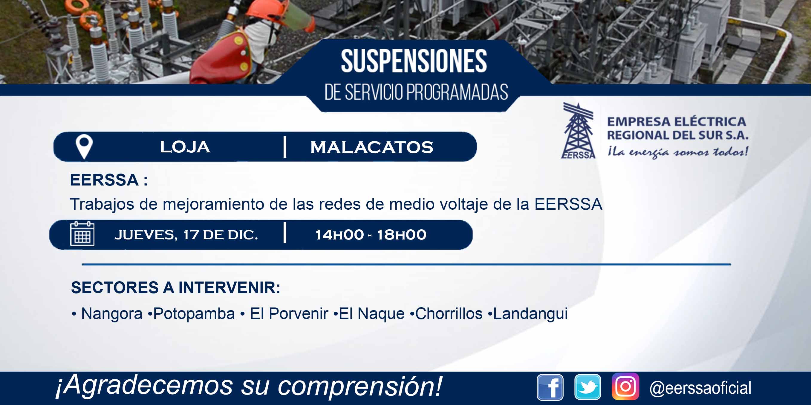 SUSPENSIÓN DE ENERGÍA MALACATOS