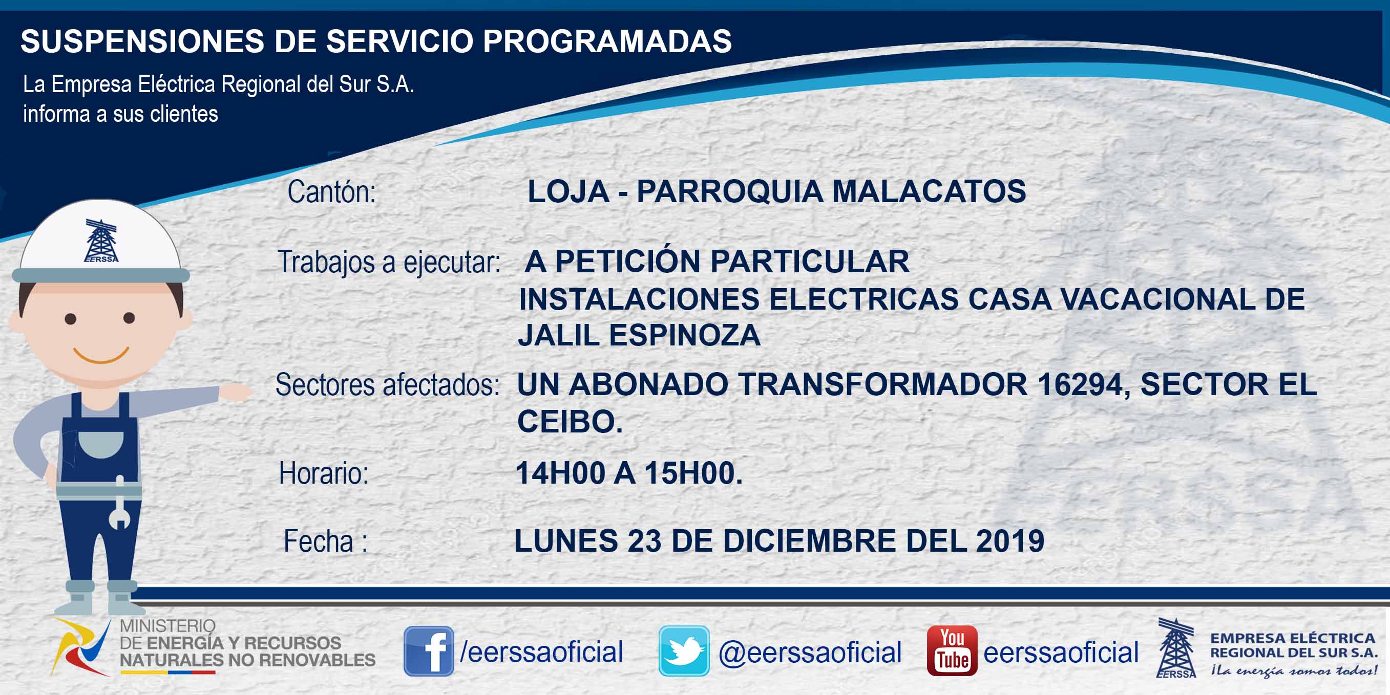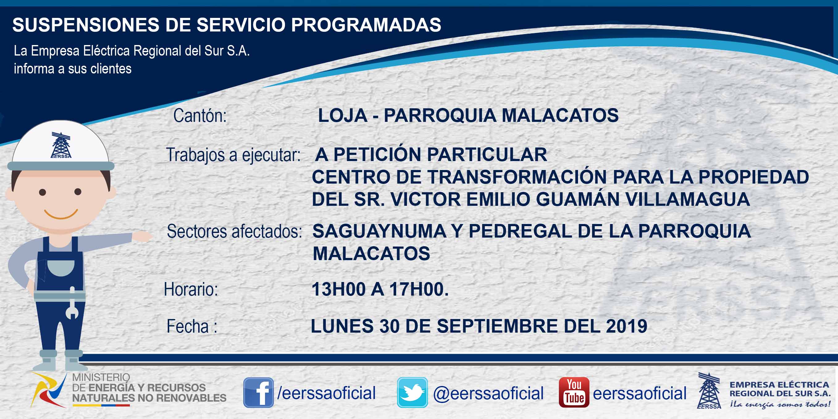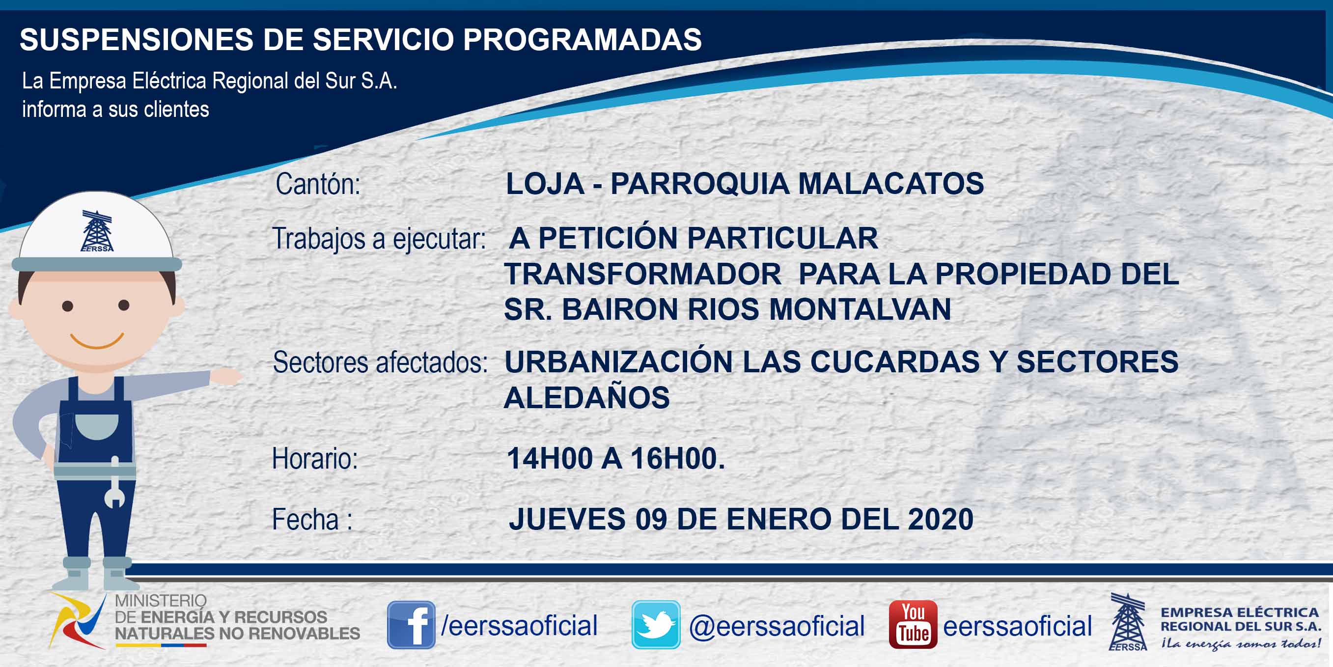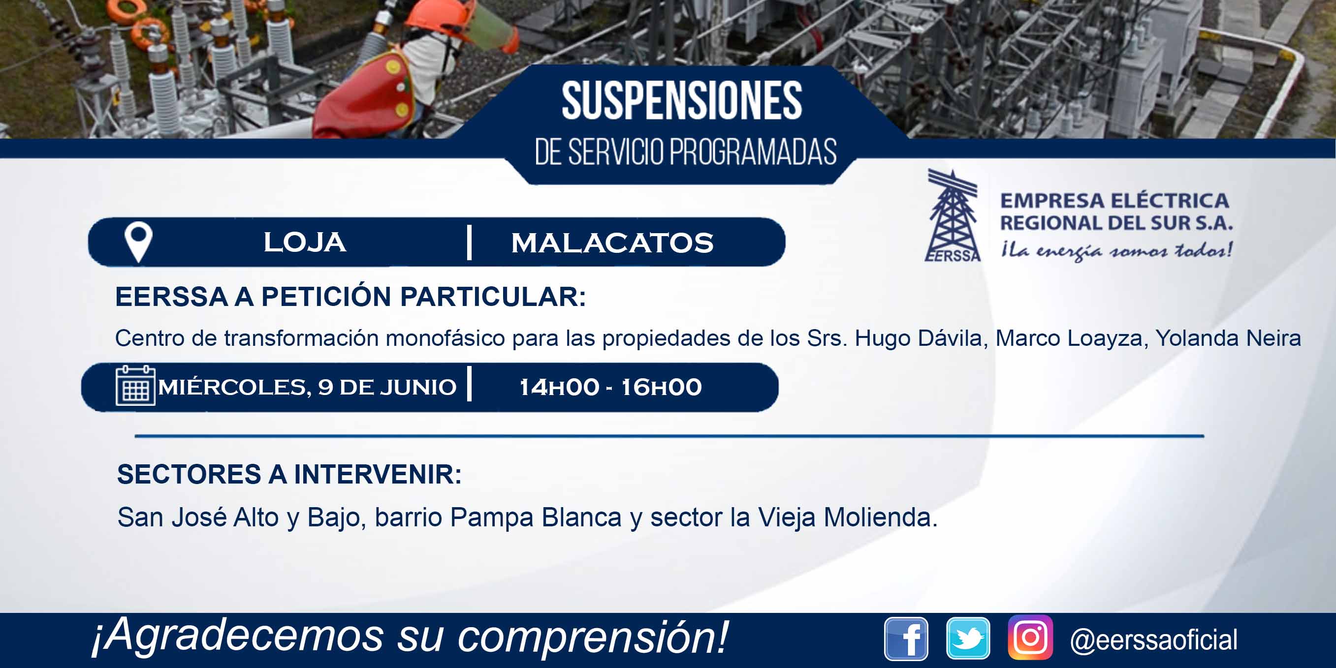SUSPENSIÓN DE ENERGÍA MALACATOS