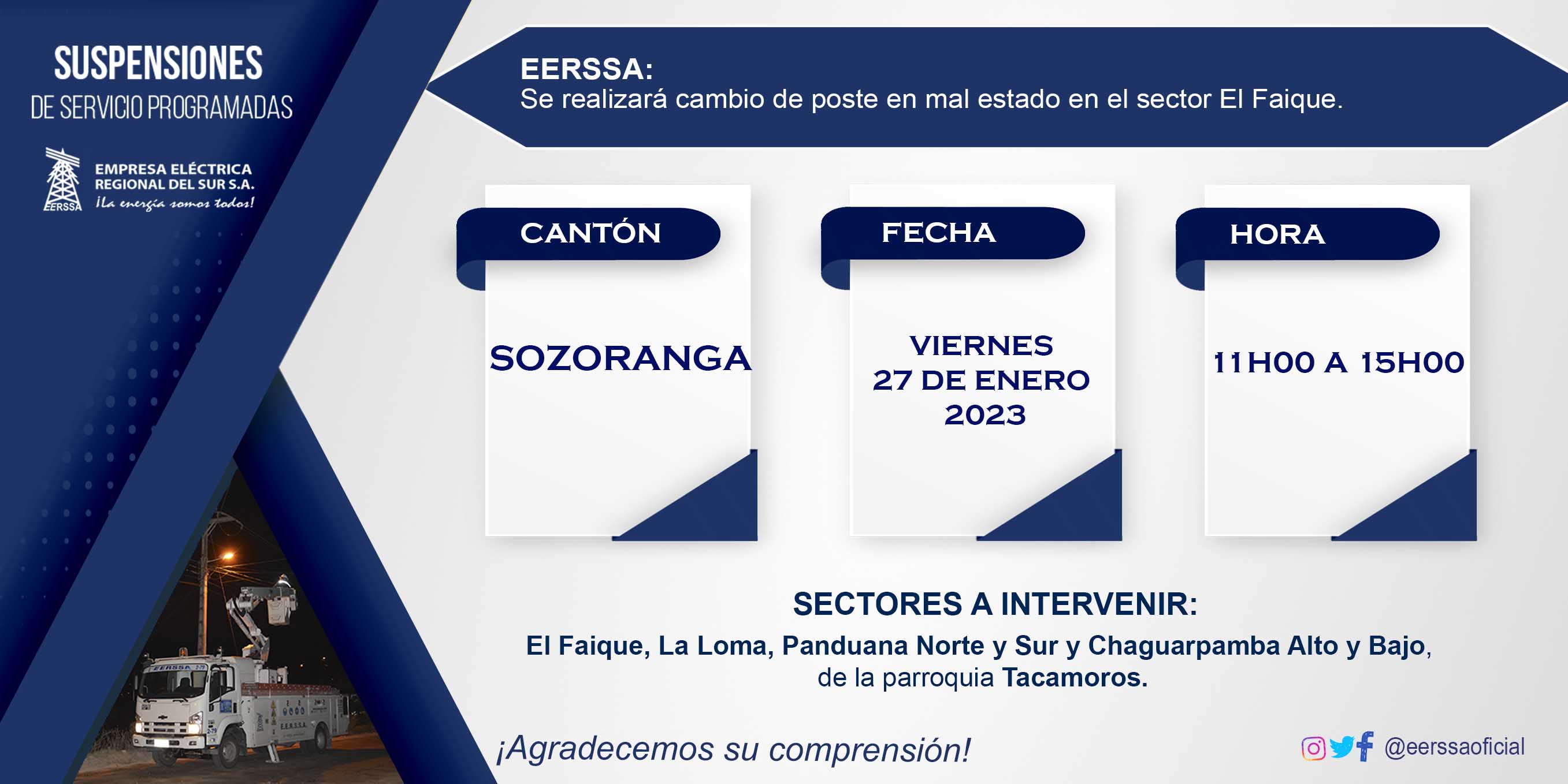 Suspensión parroquia Sucre - Loja, 27 ene.